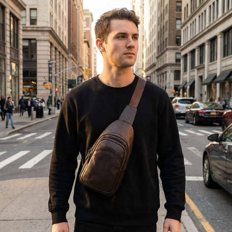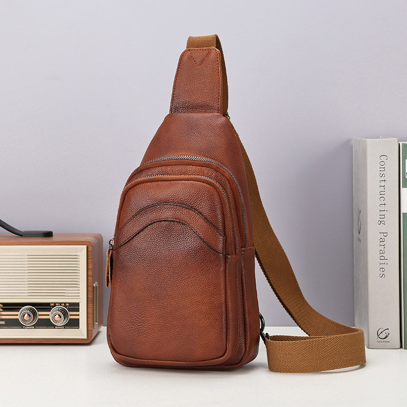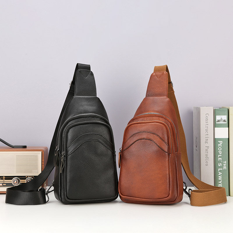 品牌正品真皮胸包男士商务休闲斜挎包头层牛皮大容量胸前包送礼物