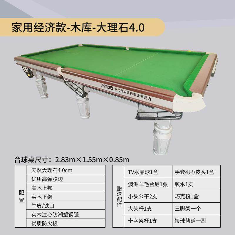 成人标准型台球桌家用中式黑八桌球台大理石台面钢木库球桌