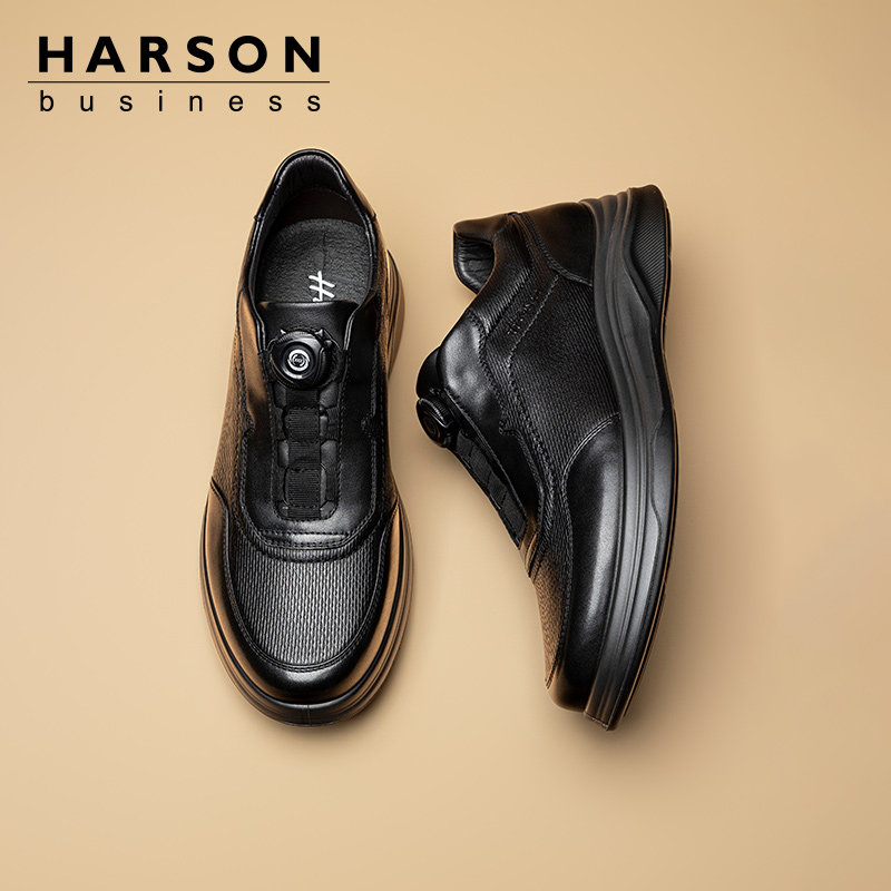哈森男鞋春季2026新款商务休闲皮鞋真皮软底男士透气运动跑步鞋子