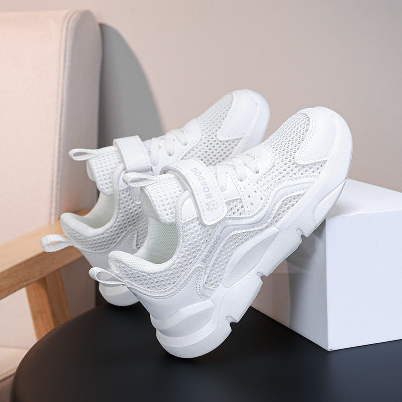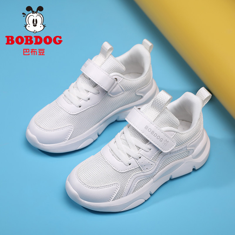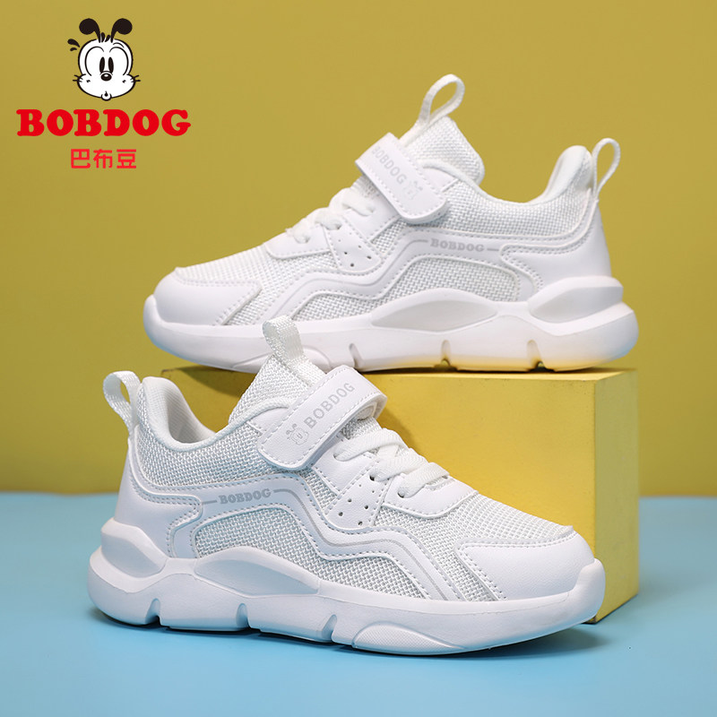 巴布豆童鞋女童小白鞋2025新款夏季透气网鞋儿童白色运动鞋子春秋