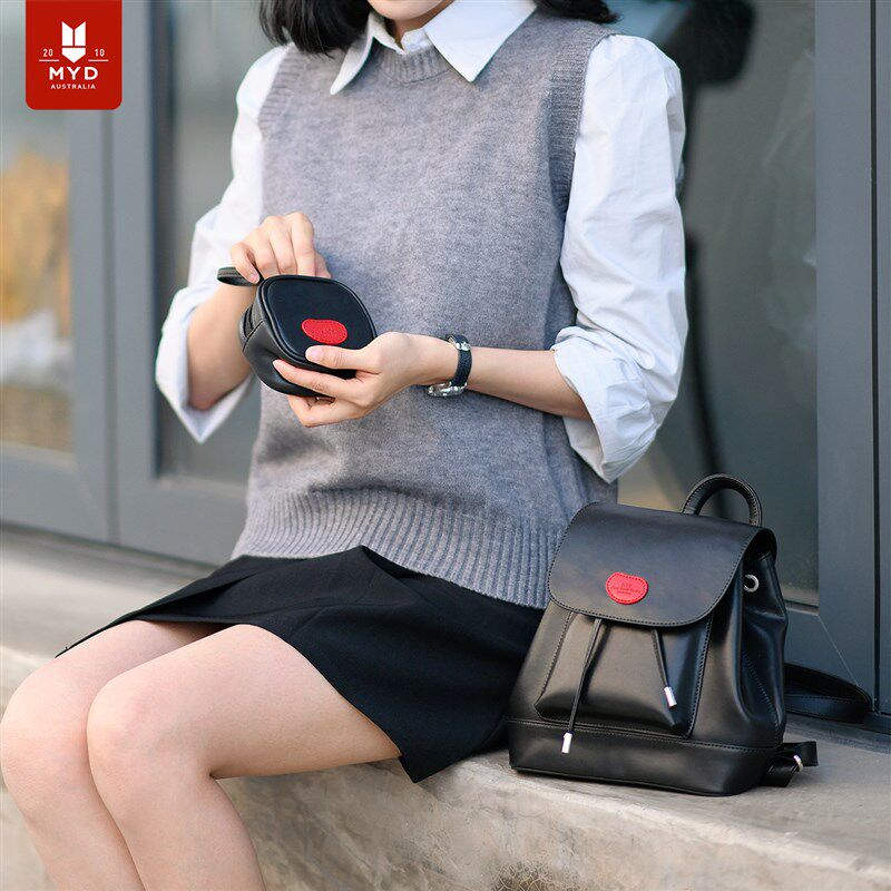 双肩包小型黑色小众设计感百搭皮质迷你轻便旅游轻便可爱抽绳背包
