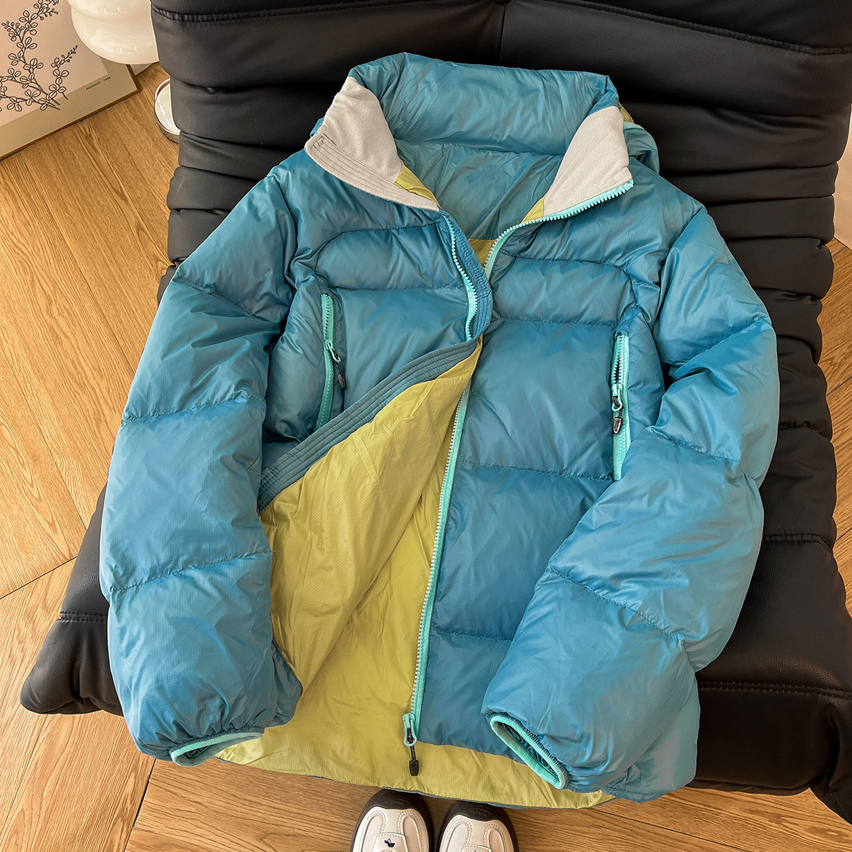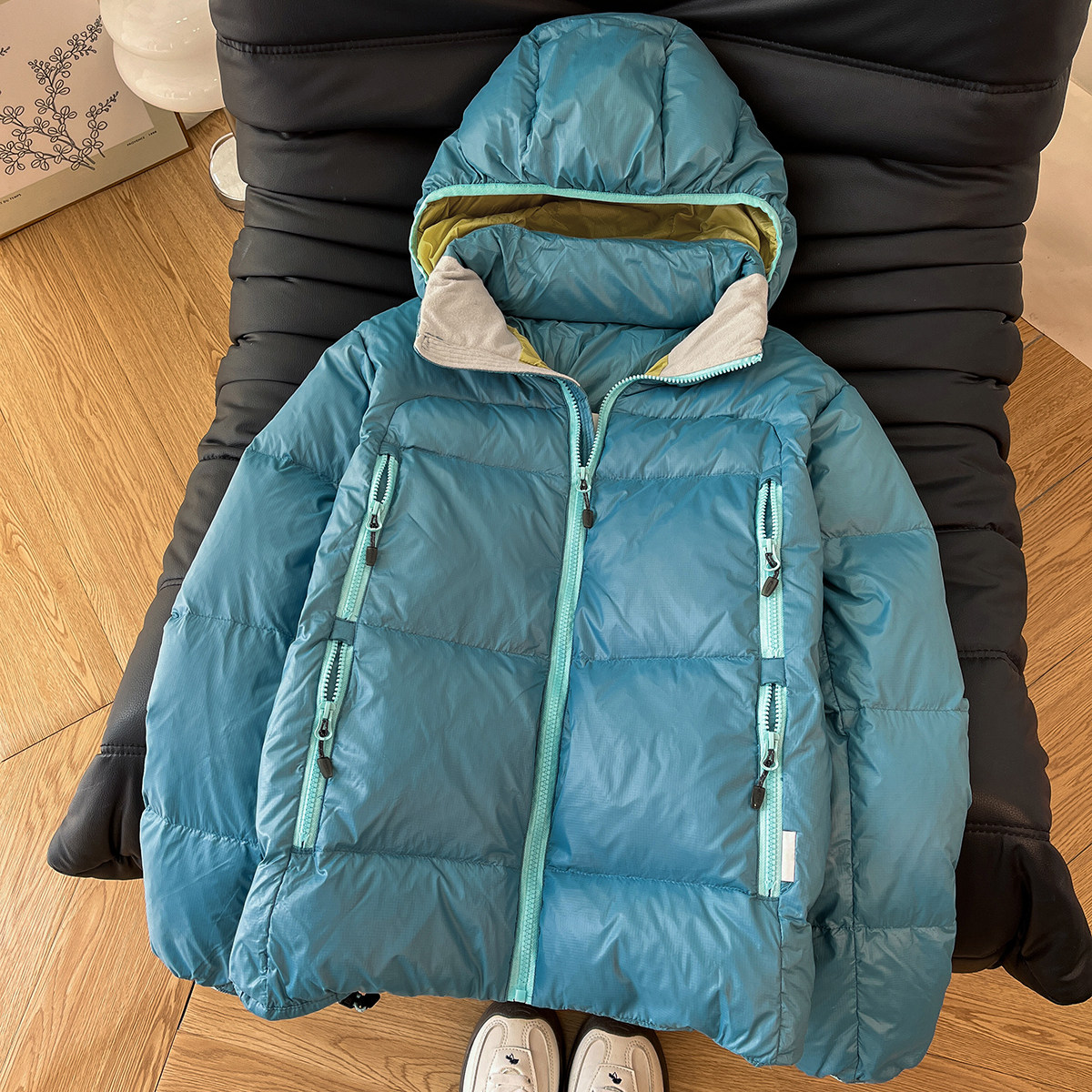 ZEENI 多巴胺轻量化户外撞色拼接连帽棉服女宽松保暖外套冬季棉袄