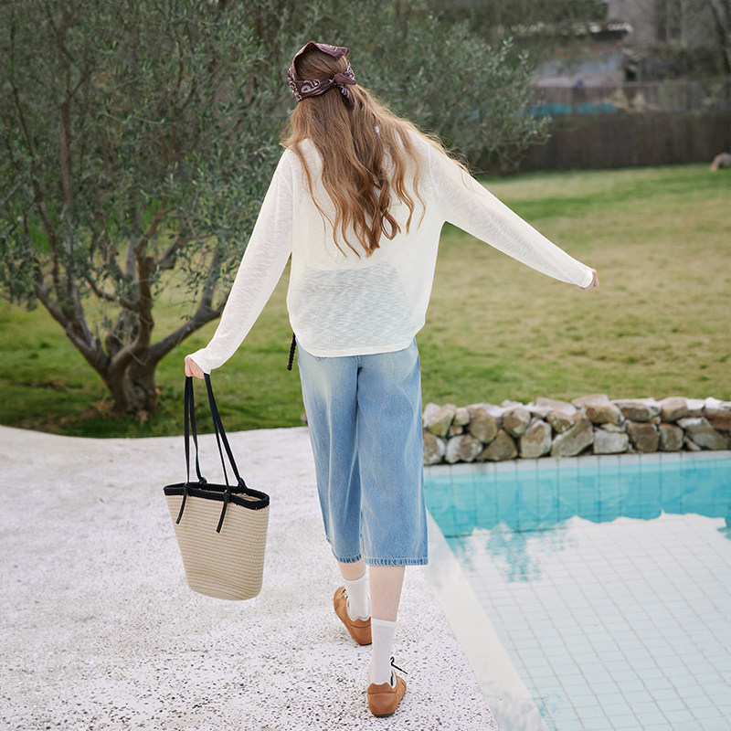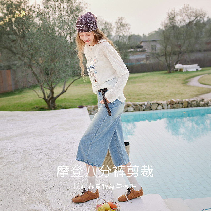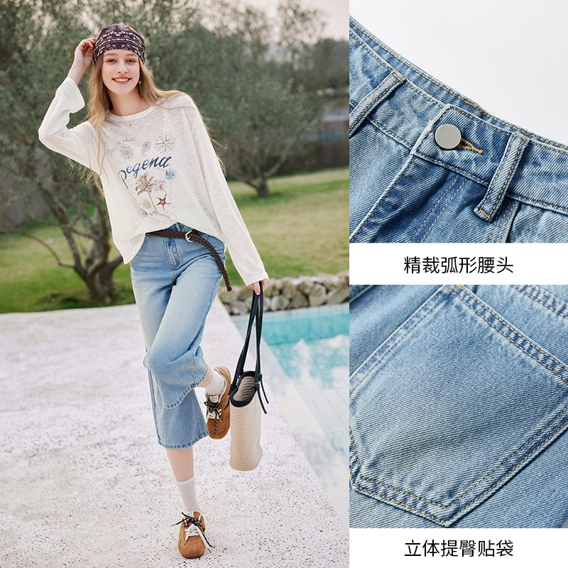 香影浅蓝色复古八分牛仔裤女2026春季新款丹宁风宽松休闲直筒裤子