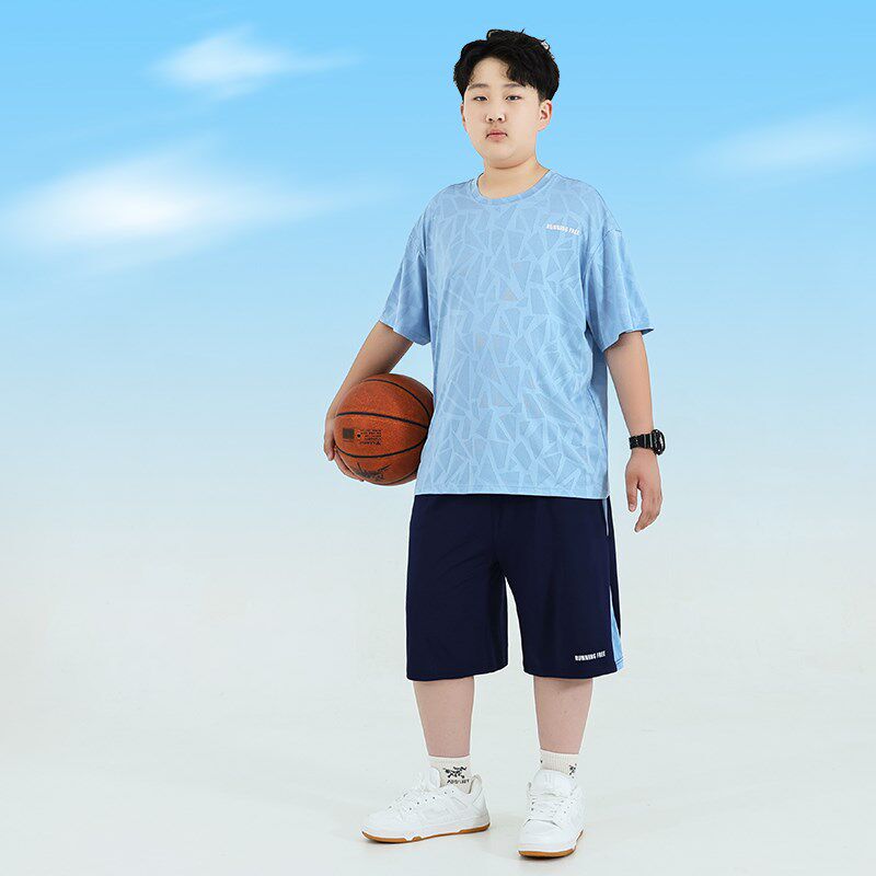 胖童夏季套装男大童胖儿童运动篮球服胖男孩加肥加大男童短袖套装