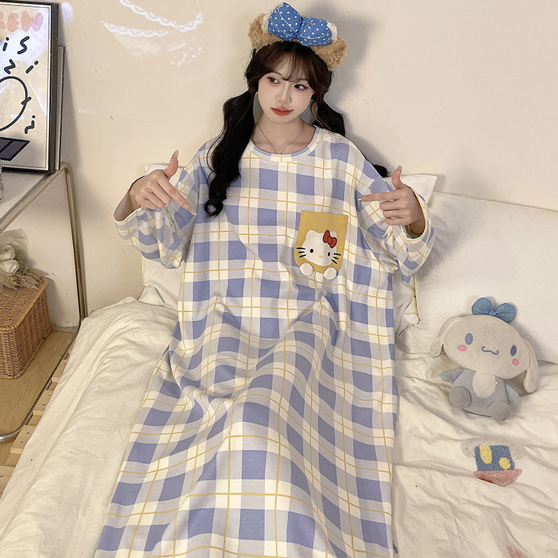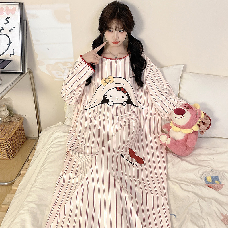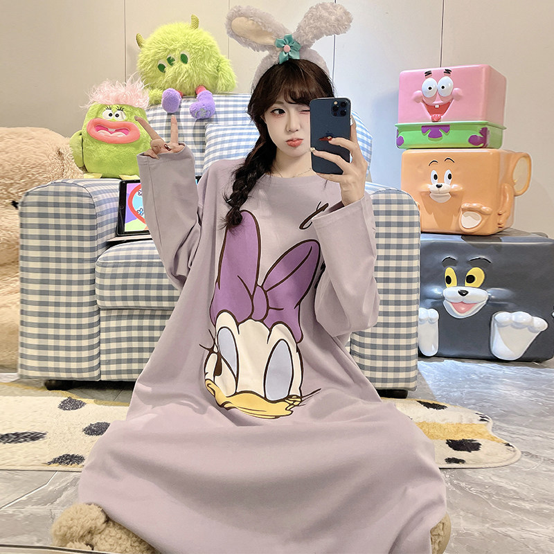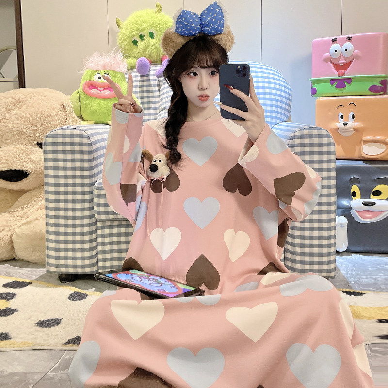 长袖睡裙女可外穿的家居服2026新款连衣裙纯棉睡衣女款高级感