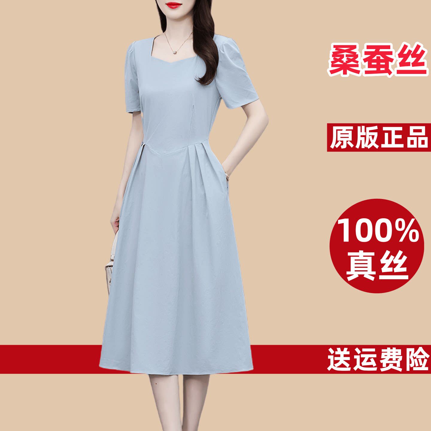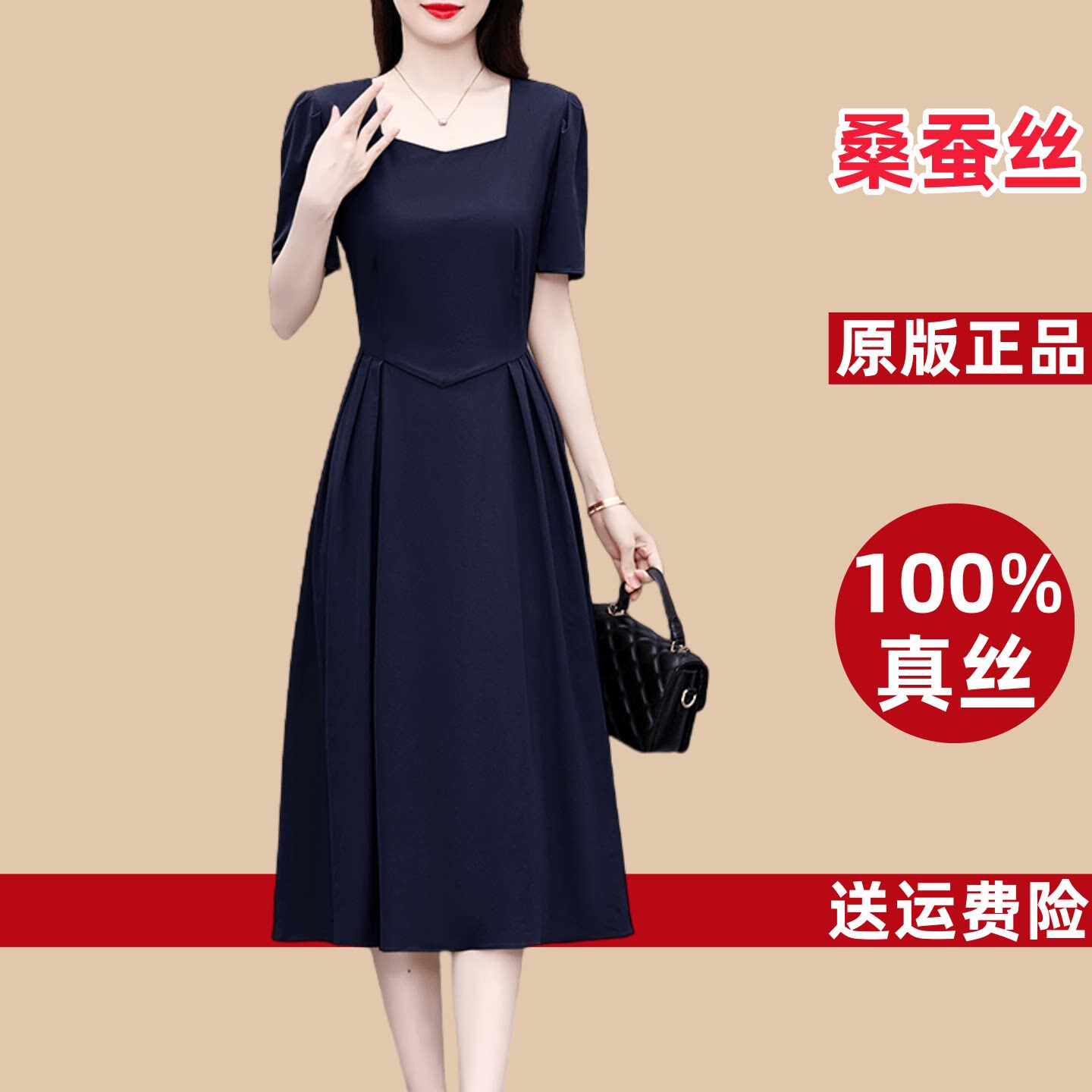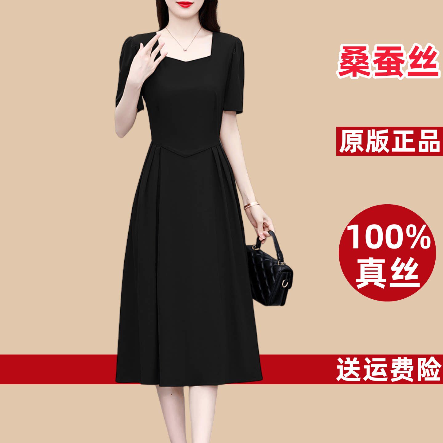 真丝桑蚕丝连衣裙女2026新款今年流行爆款妈妈气质显瘦香云纱裙子