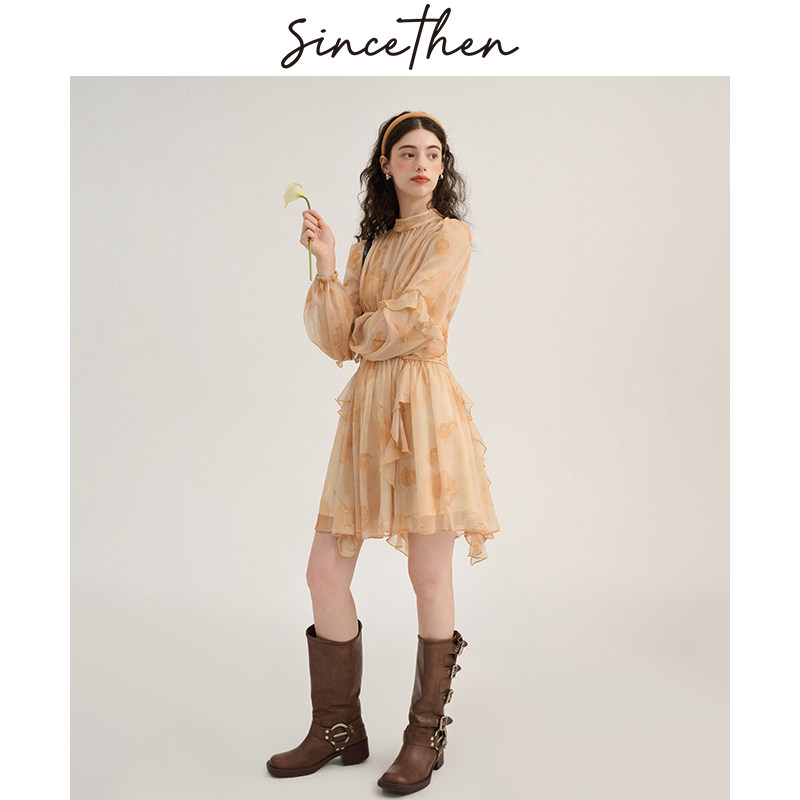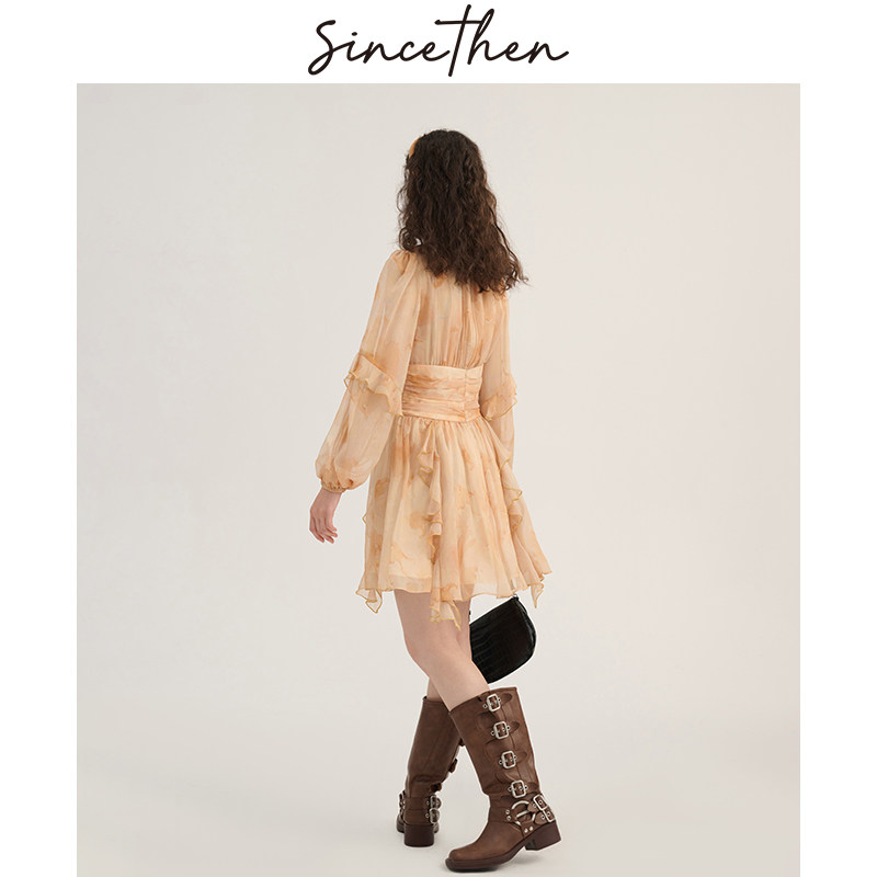 sincethen 法式风短裙小个子碎花裙长袖裙子连衣裙女早春2024新款