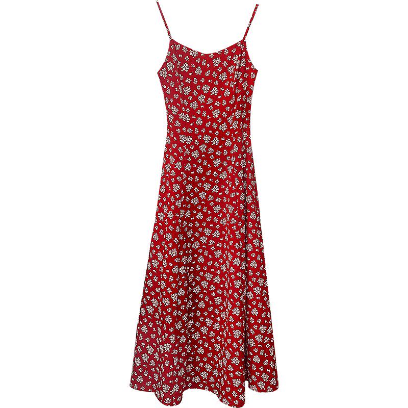 红色碎花吊带连衣裙2025新款今年流行爆款显瘦长裙大码女装胖mm夏