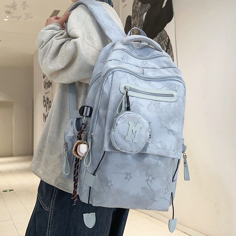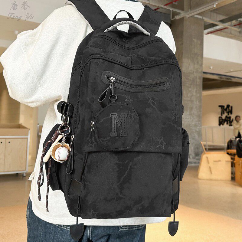 大容量书包女初中生高中学生休闲百搭双肩包男大学生简约背包潮包
