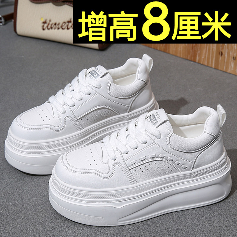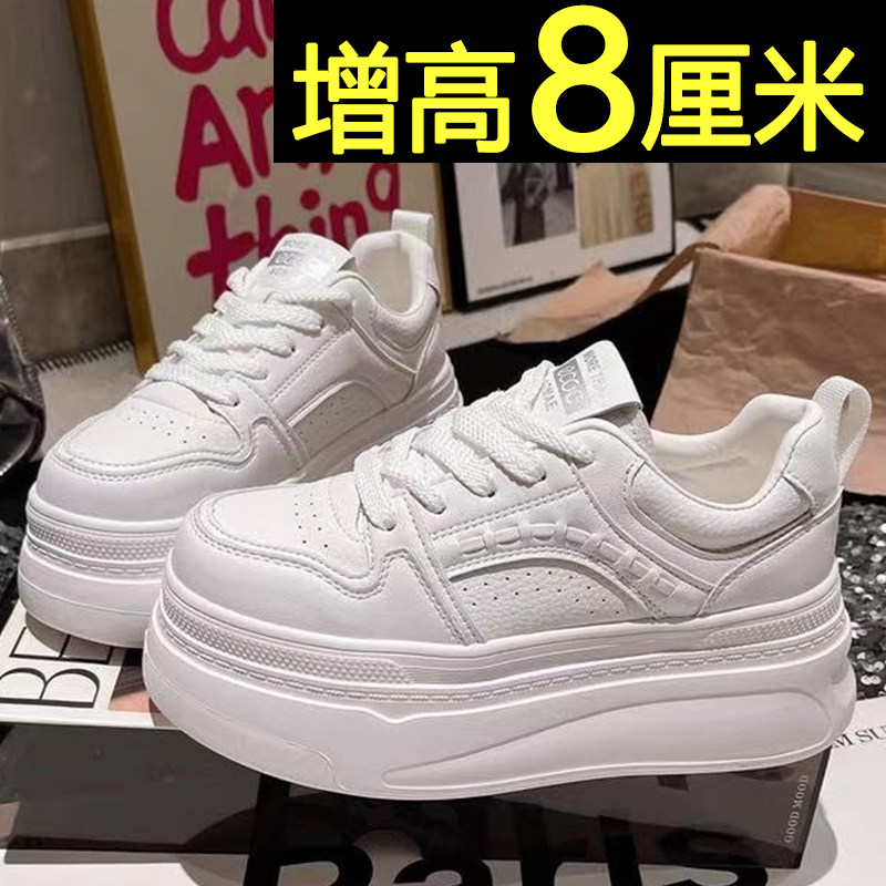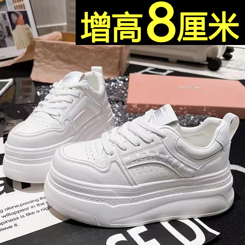 厚底板鞋女2026新款春季新款8cm内增高女鞋不累脚休闲运动小白鞋