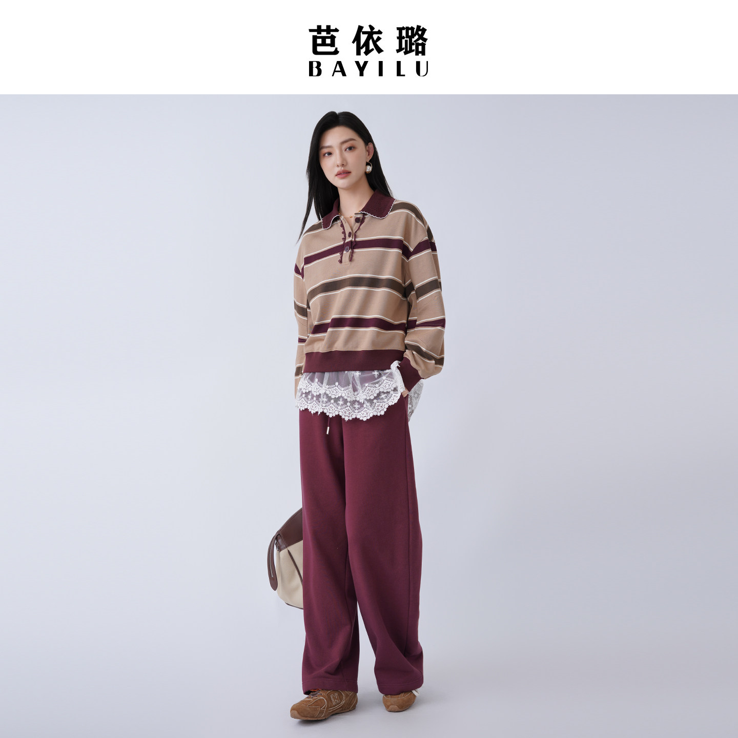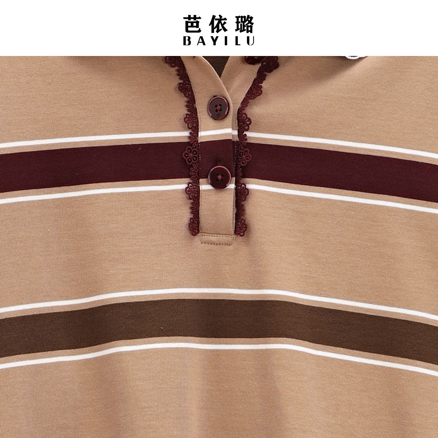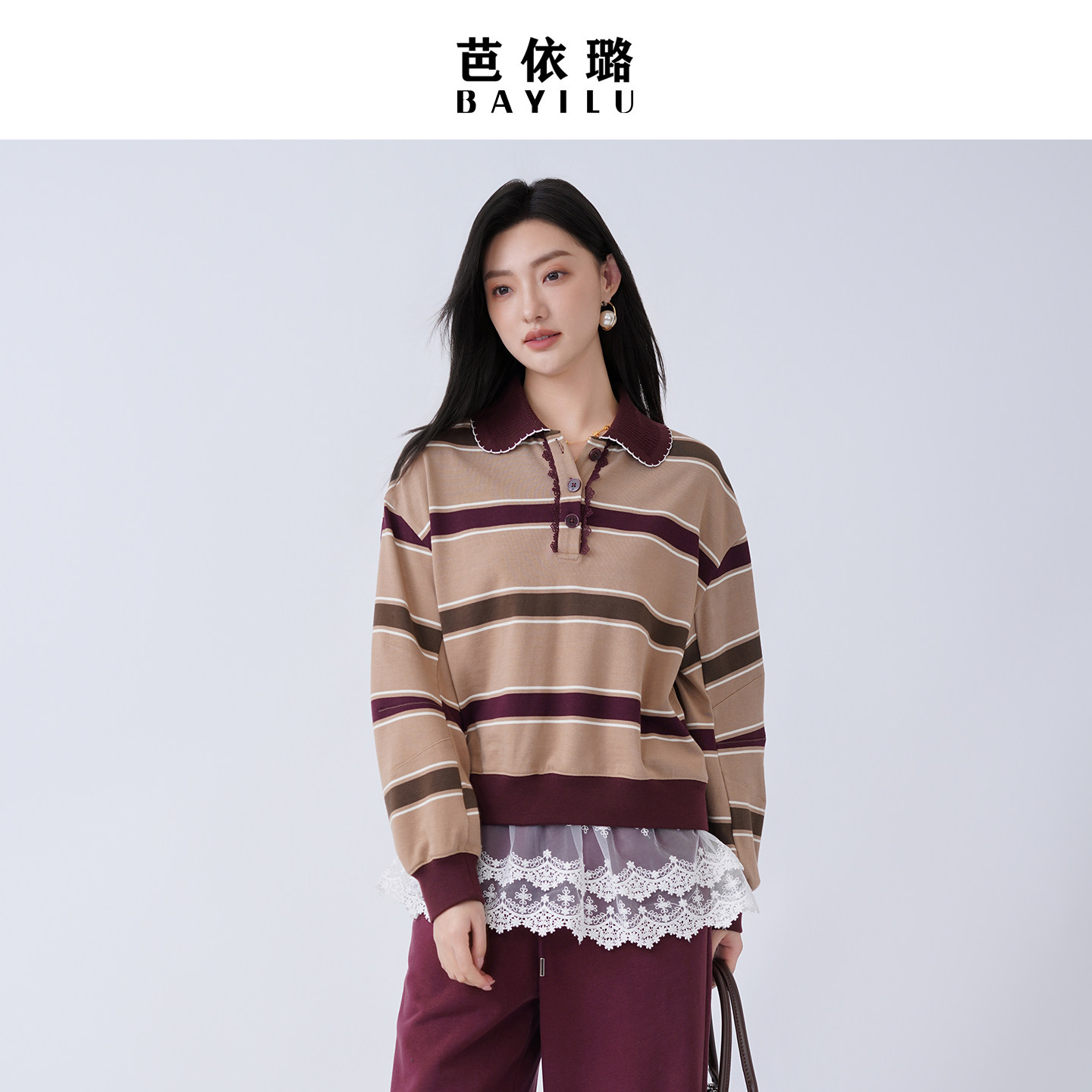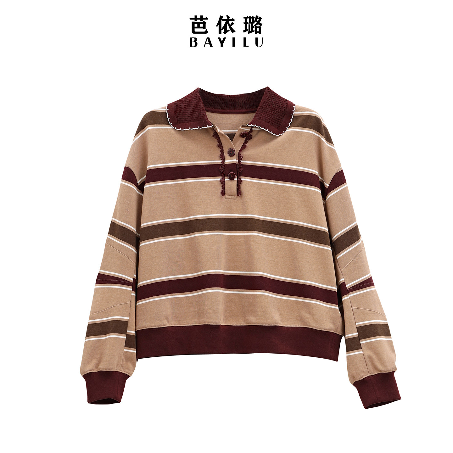 芭依璐2026春季新款卫衣外套polo领百搭条纹长袖休闲套头上衣女装