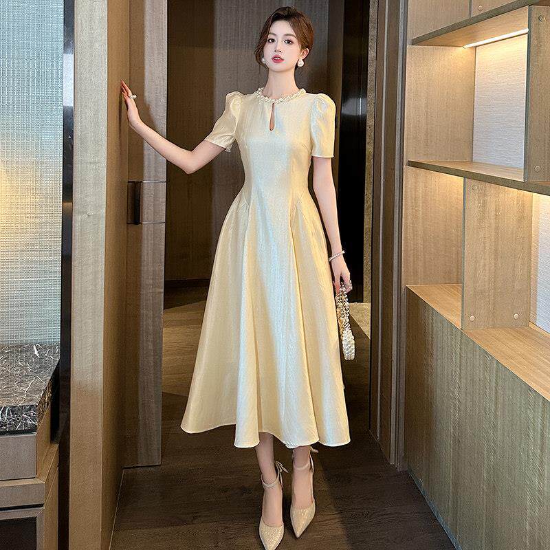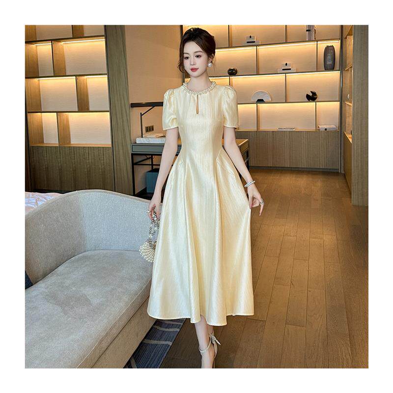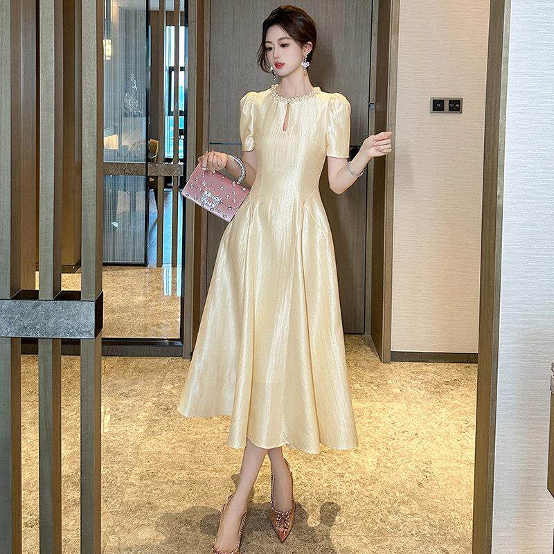 小香风a字连衣裙女夏季富家千金收腰高级感礼服长裙轻奢小众高端