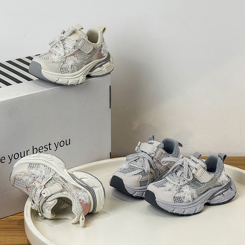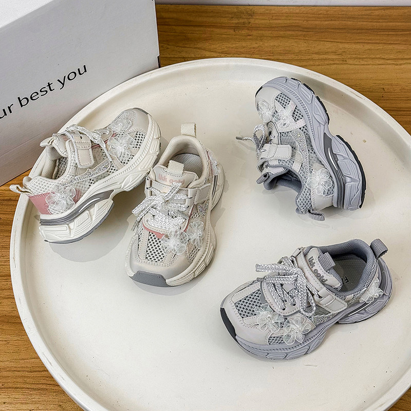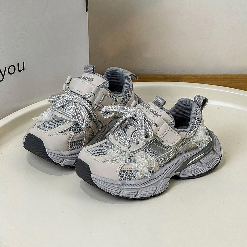 薄款春夏季单网透气水钻花朵闪亮女孩公主老爹炸街痞帅女童运动鞋