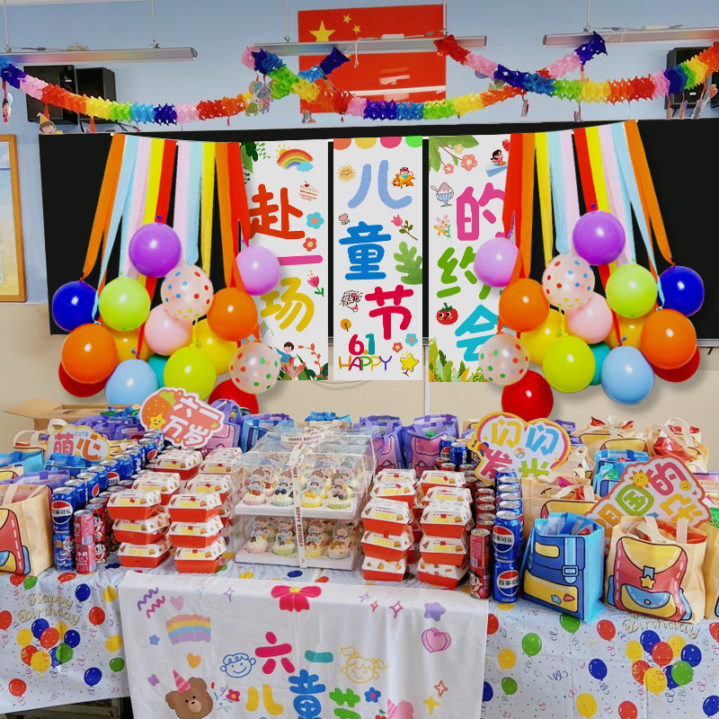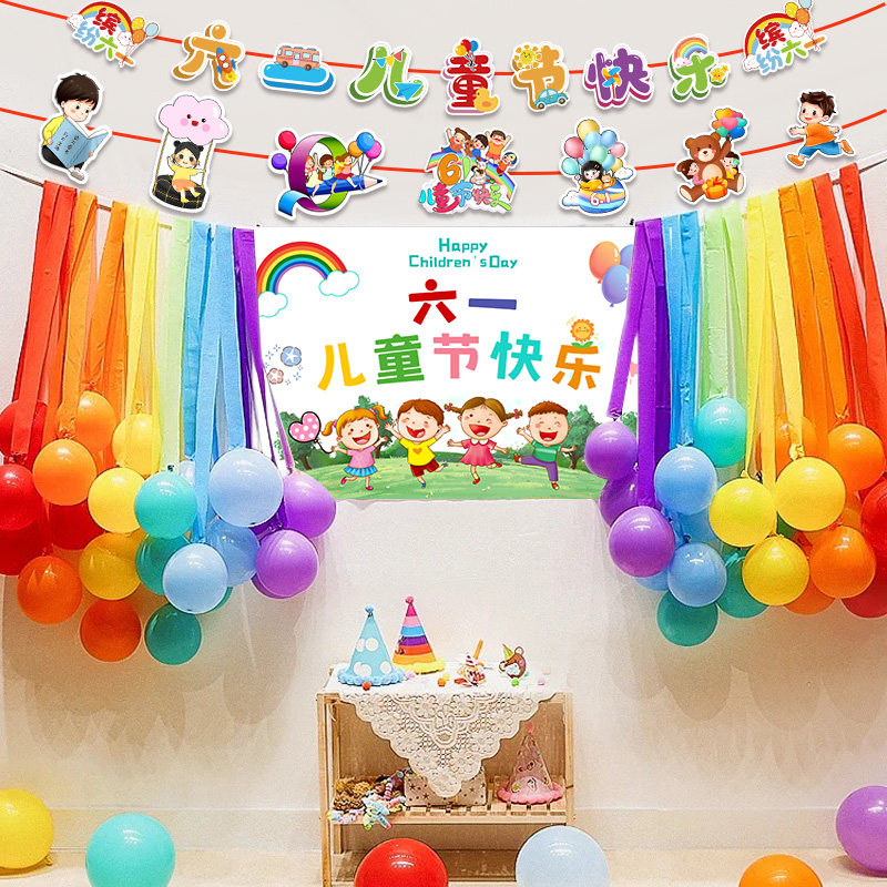 六一儿童节彩色生日男孩女孩气球家里商场教室场景布置装饰氛围感