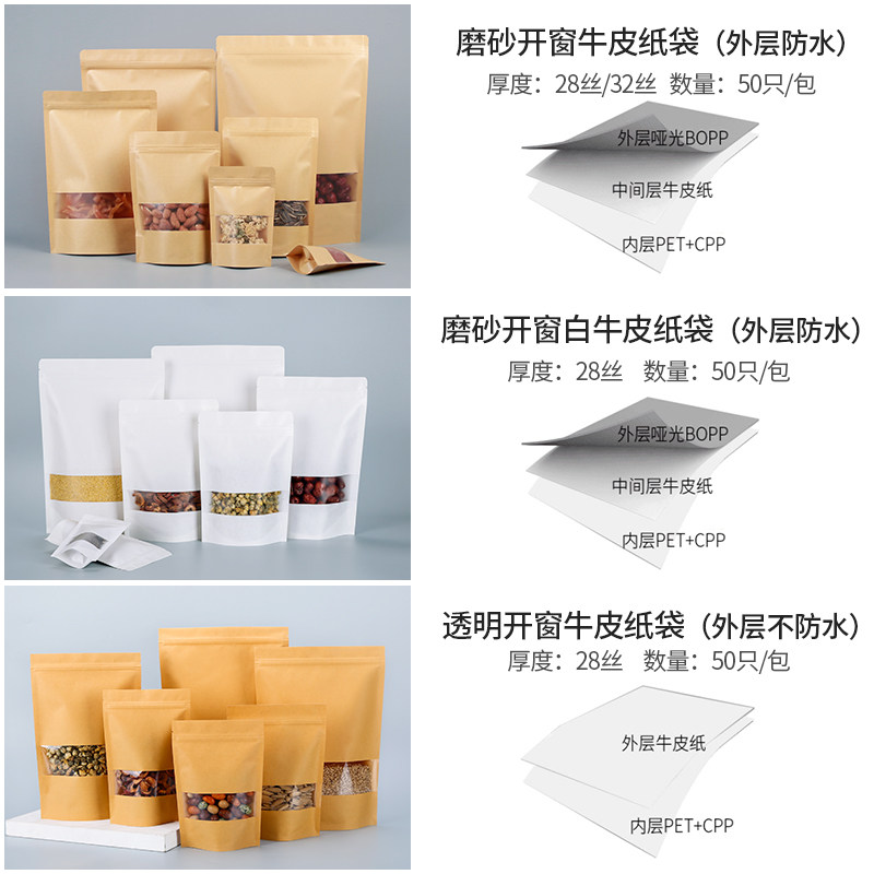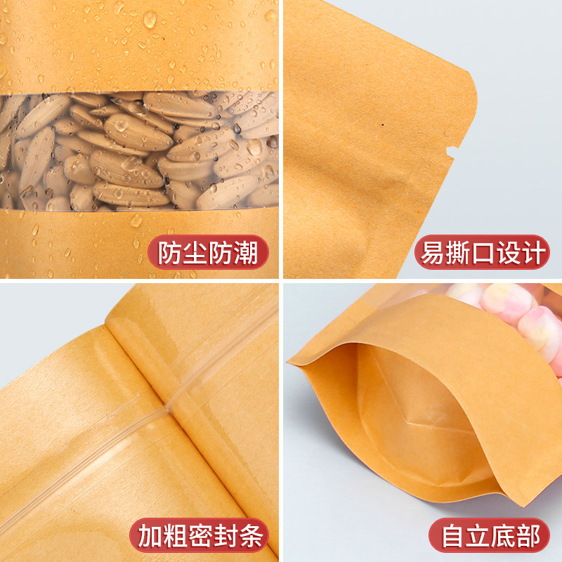 磨砂开窗牛皮纸袋自封袋茶叶食品自立袋密封食品袋定制批发包装袋