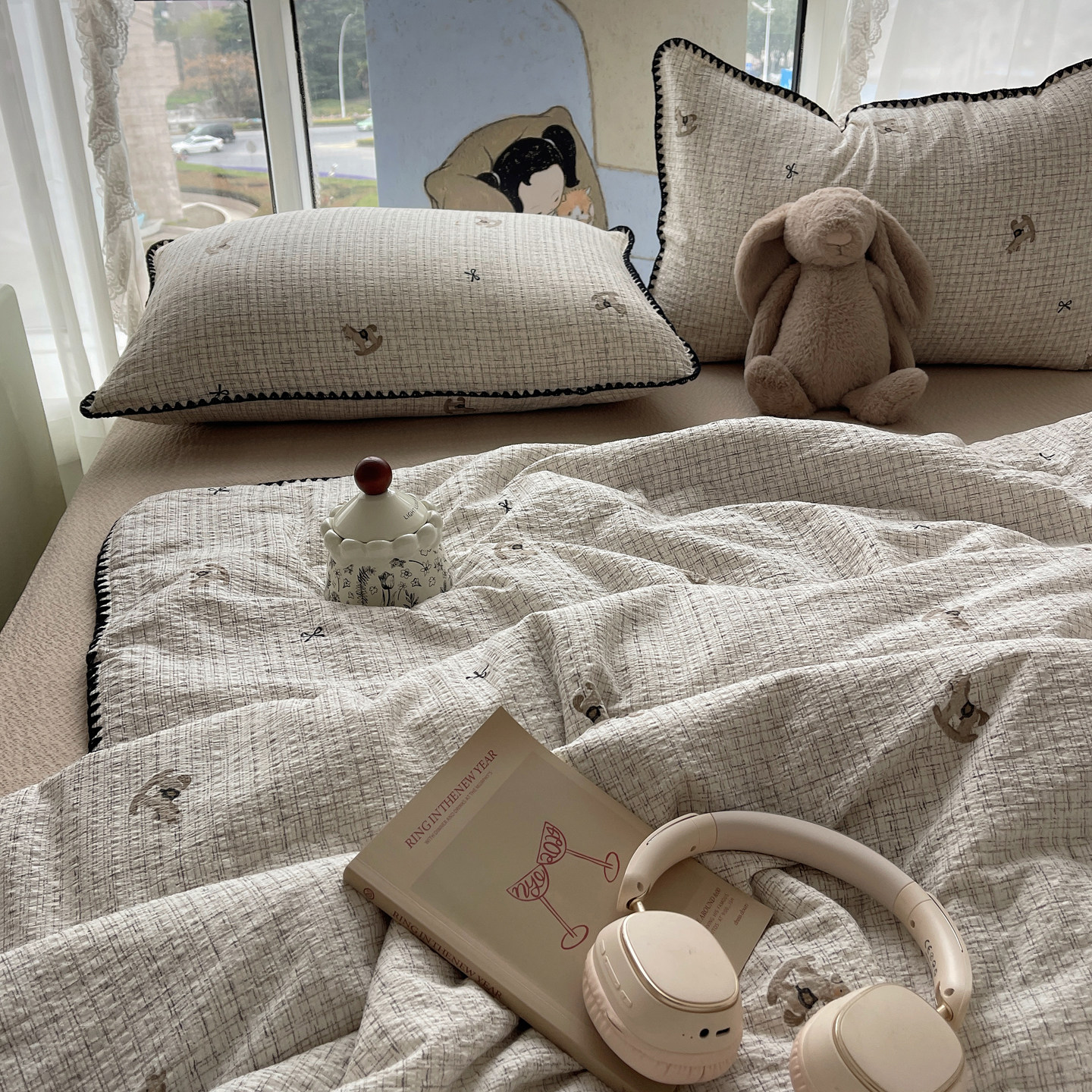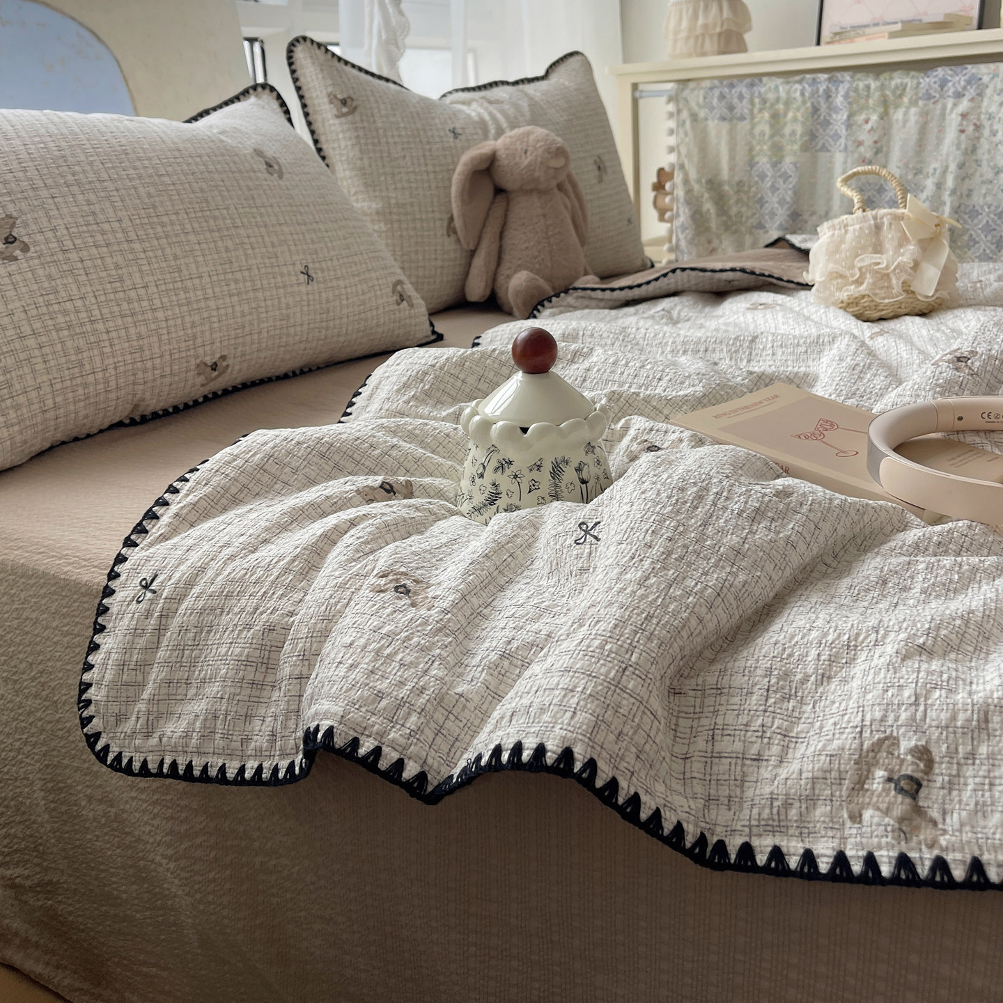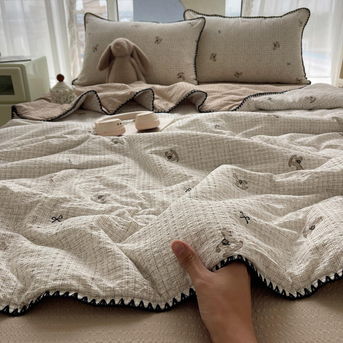 A类夏季夏凉被四件套纯棉全棉可机洗空调被双层纱学生宿舍用薄被3