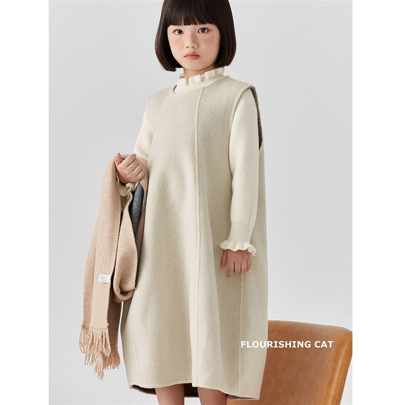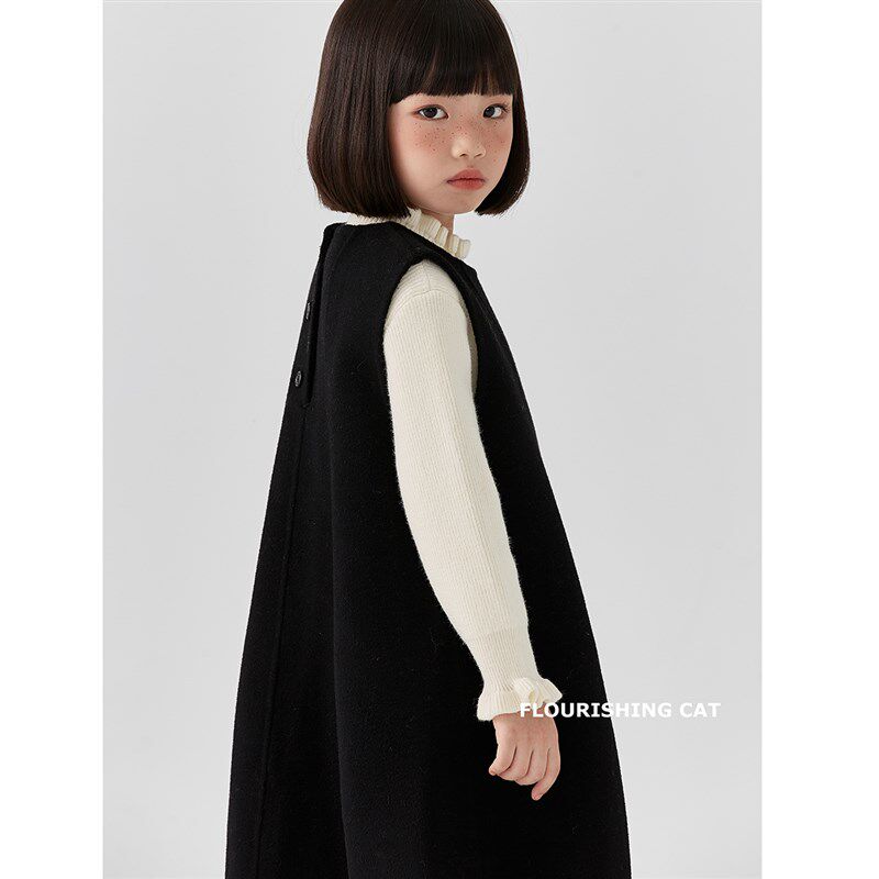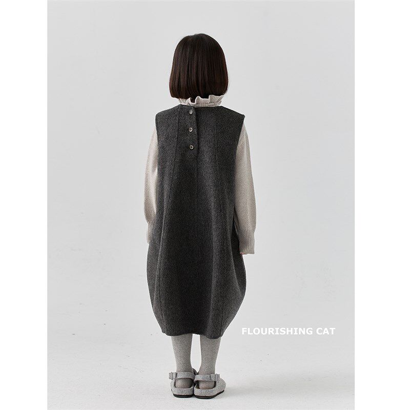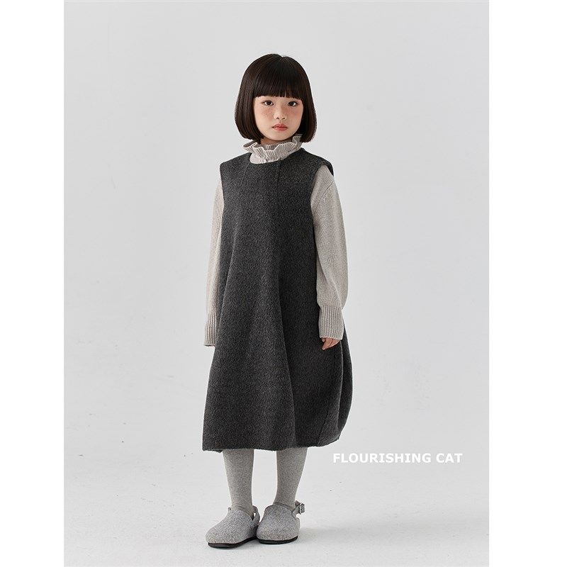 女童毛呢羊毛连衣裙秋装2024新款秋冬季儿童裙子灰色公主群背心裙