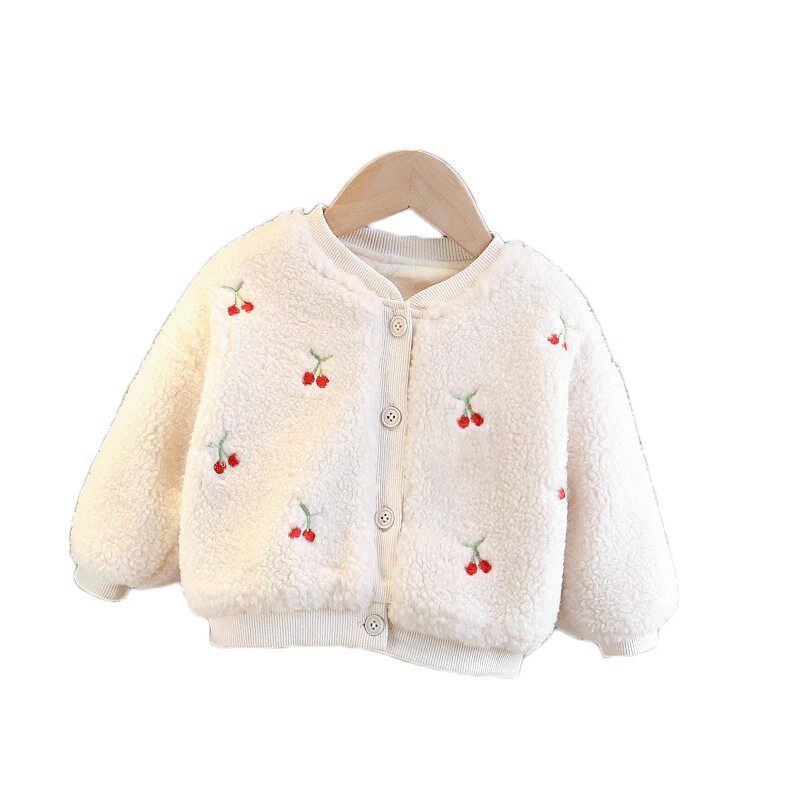 女童秋冬天加绒外套洋气婴儿加厚上衣公主开衫女宝宝羊羔绒毛毛衣
