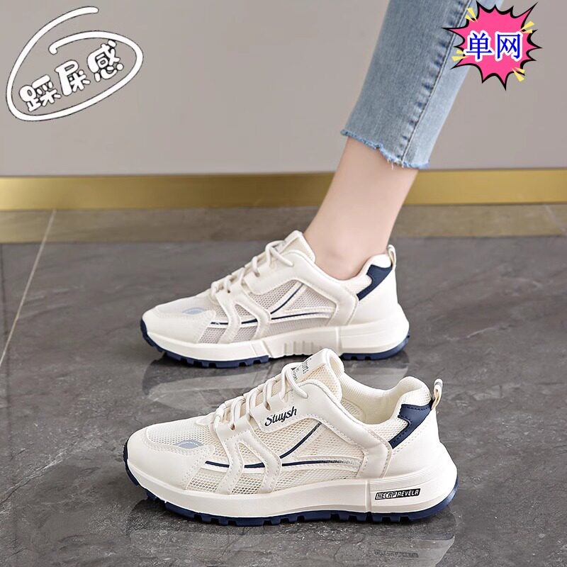 真皮踩屎感女鞋夏季网面透气网鞋女薄款2026新款防滑软底运动鞋女