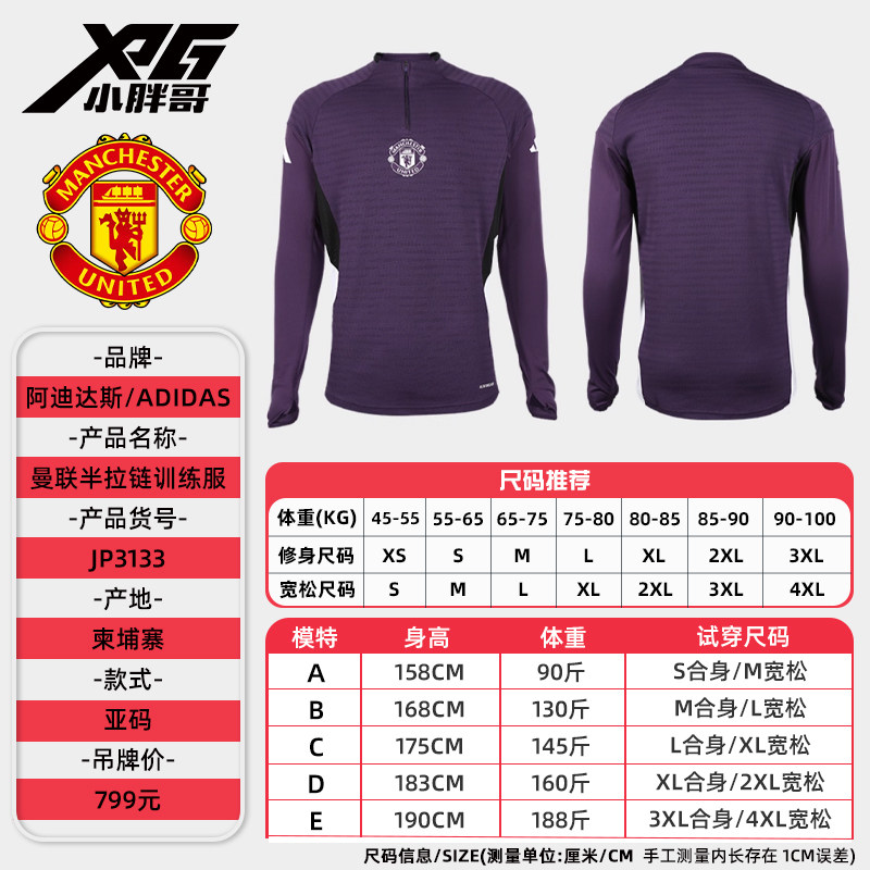 小胖哥XPG阿迪达斯25/26曼联比赛训练赛前热身长袖半拉链足球服