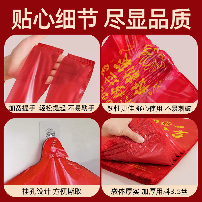 红色除秽拉吉转运袋提绳式免撕塑料袋手提加厚加大吉祥红色垃圾袋