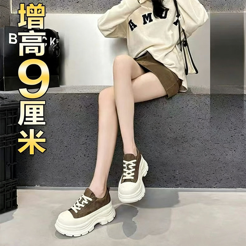 厚底小白鞋女2026春季新款内增高10cm轻便休闲时尚百搭松糕老爹鞋