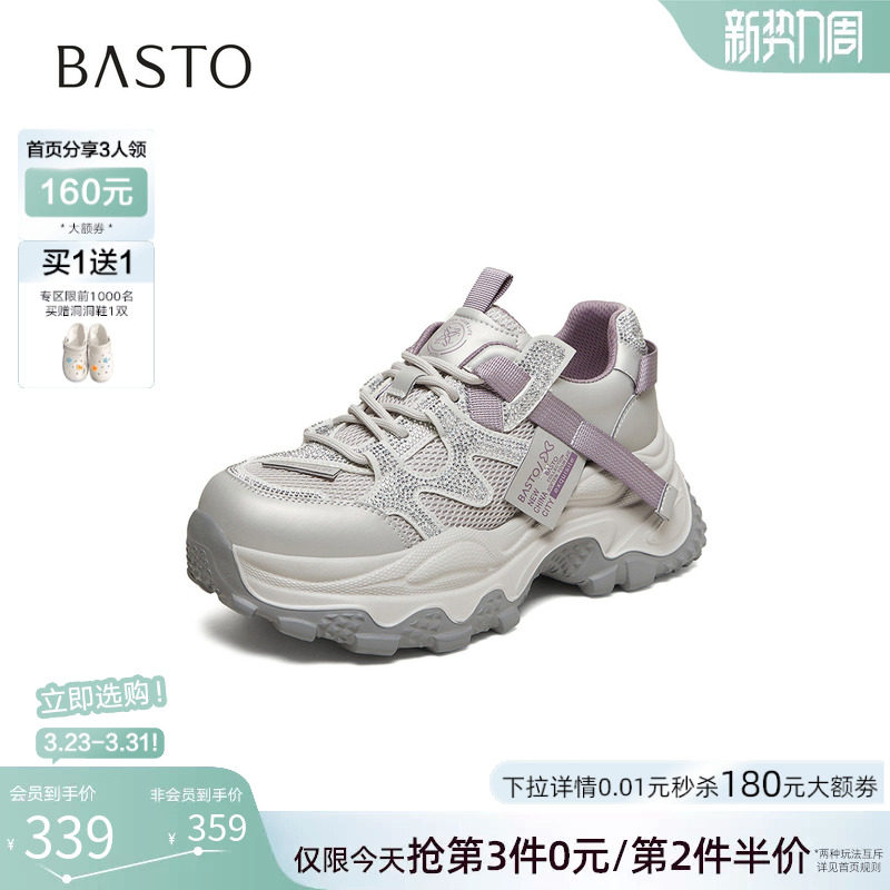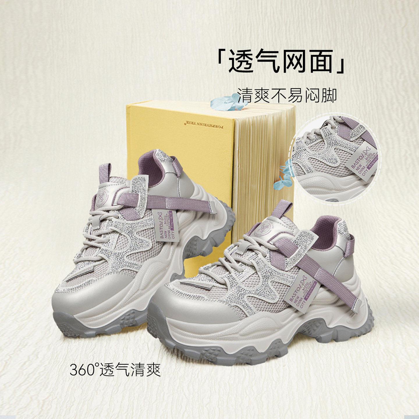 百思图2026春季商场新款厚底增高网面老爹鞋运动休闲女鞋B6098AM6