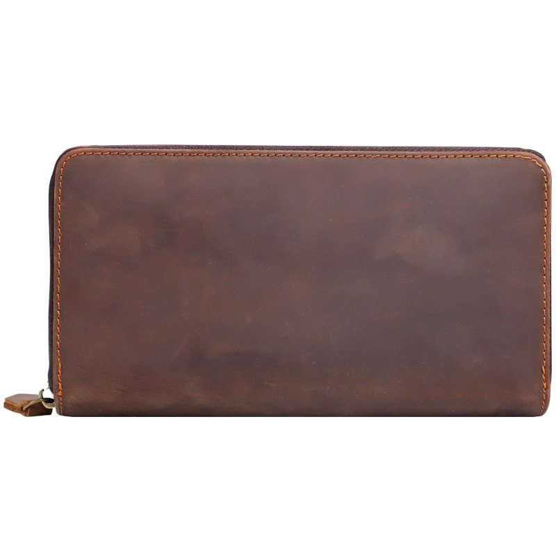 男士真皮长款钱包头层牛皮复古手拿包多功能手机包疯马皮手抓包潮