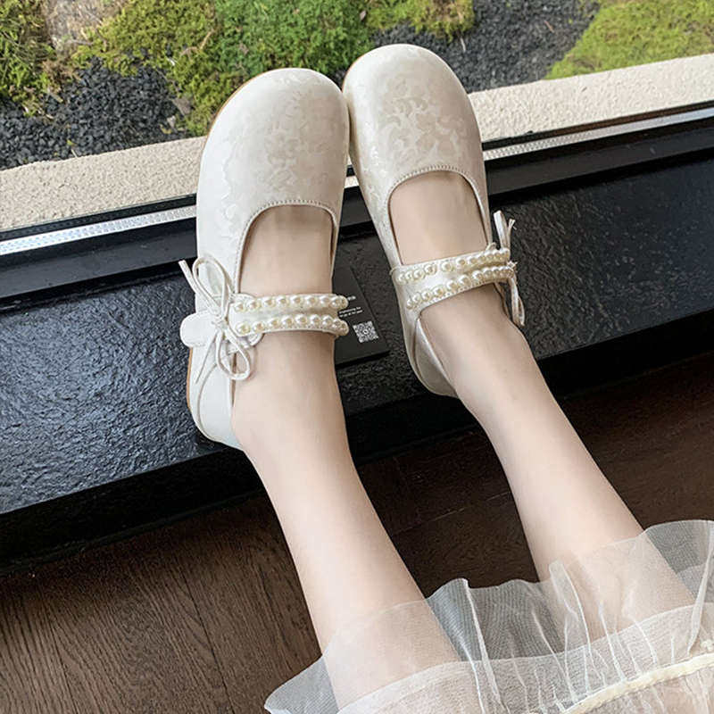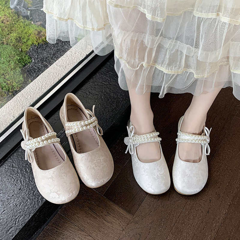 珍珠魔术贴一脚蹬玛丽珍鞋子配裙子2026春夏新款爆款平底单鞋女鞋