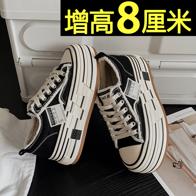 帆布鞋女2026新款厚底百搭白色ins潮超火休闲板鞋内增高小白鞋