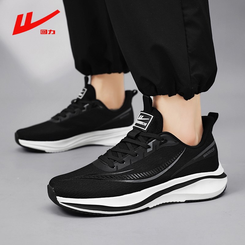 回力情侣款运动鞋男女鞋黑色轻便软底超轻网面透气减震黑色跑步鞋