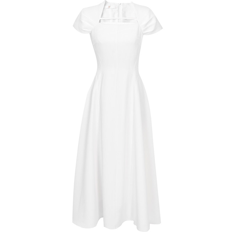 2026年夏季新款法式赫本风名媛泡泡袖收腰显瘦长款大摆连衣裙