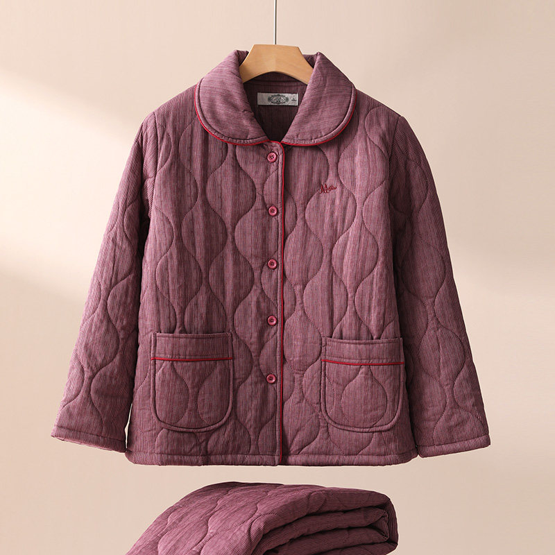 311线报网描述:美标层加厚夹棉睡衣套装女冬