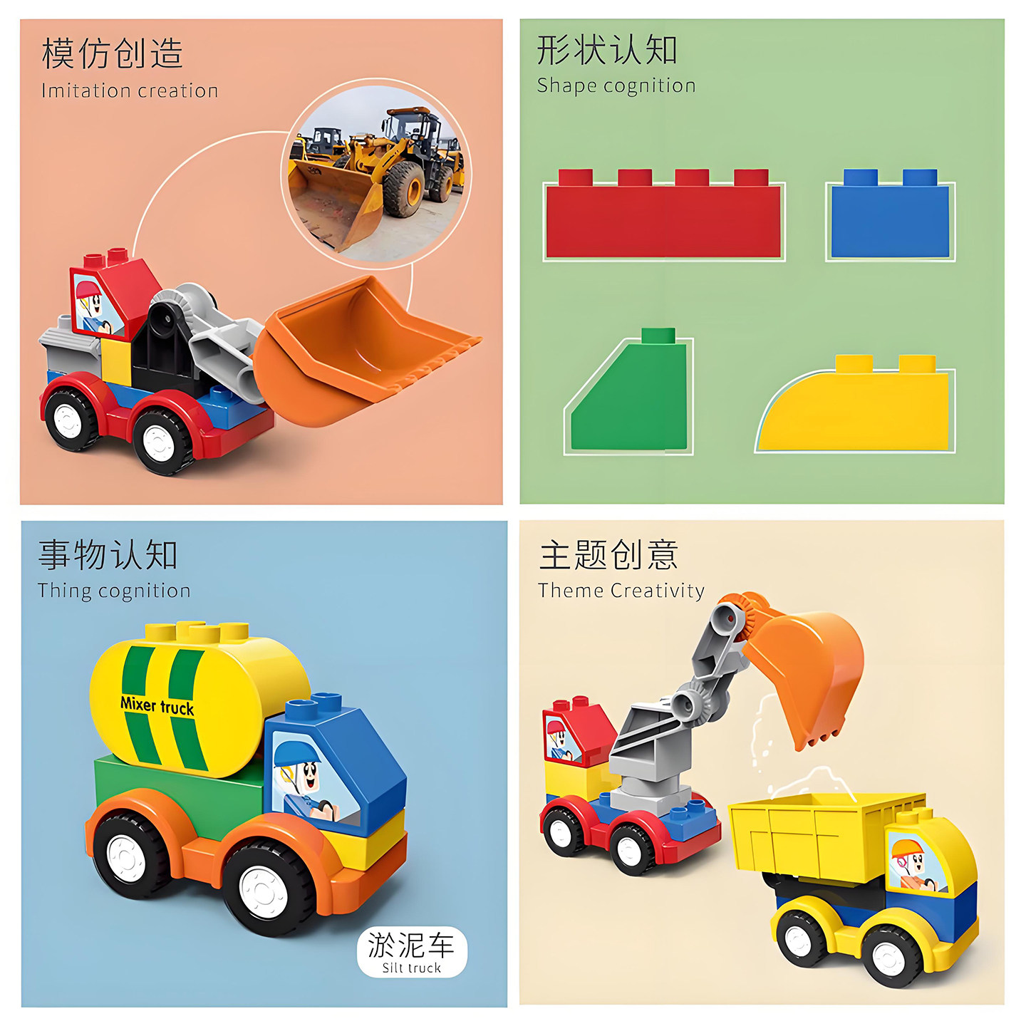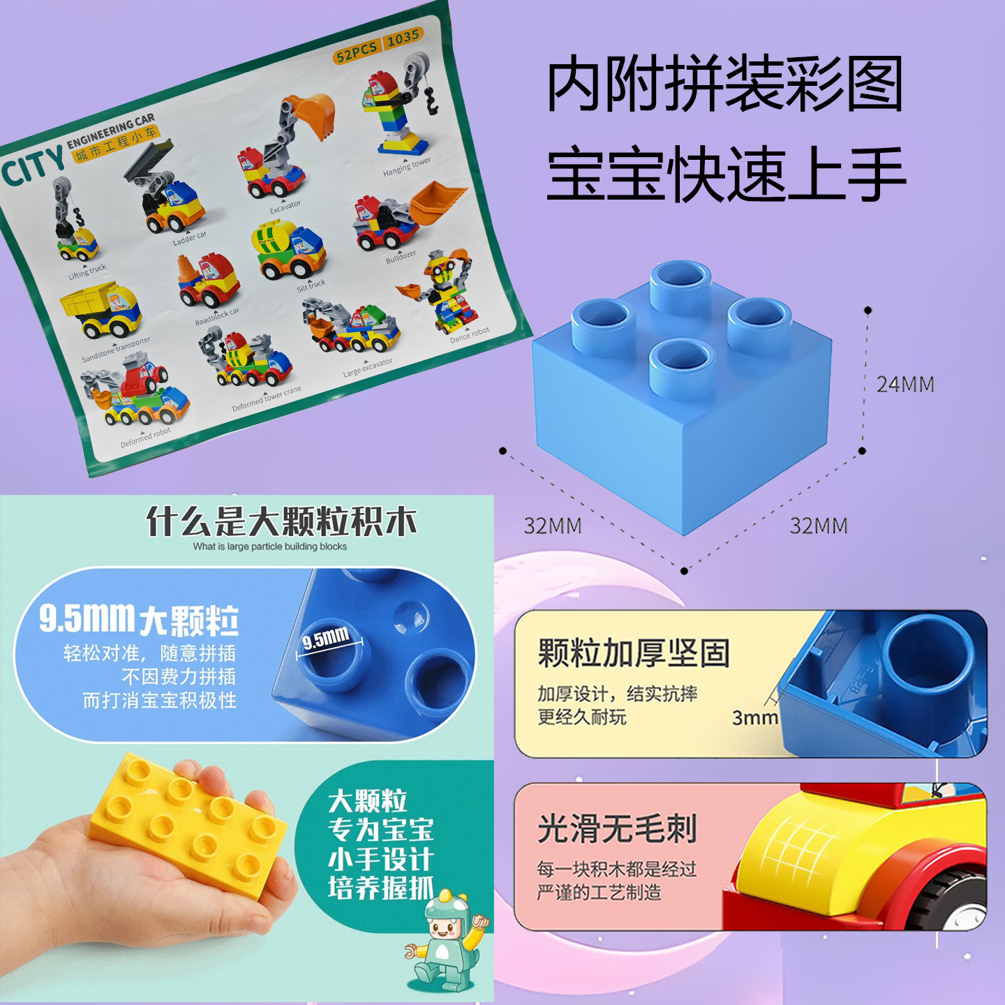 大颗粒儿童积木拼图3到6岁益智挖掘机 男女孩百变小汽车拼装玩具