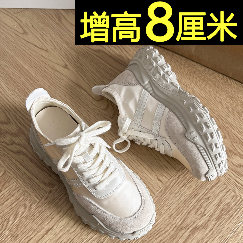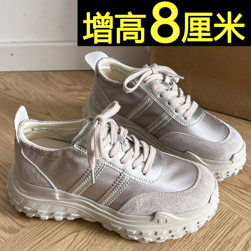 内增高休闲鞋女款2026新款夏季透气银色老爹鞋厚底百搭芭蕾德训鞋