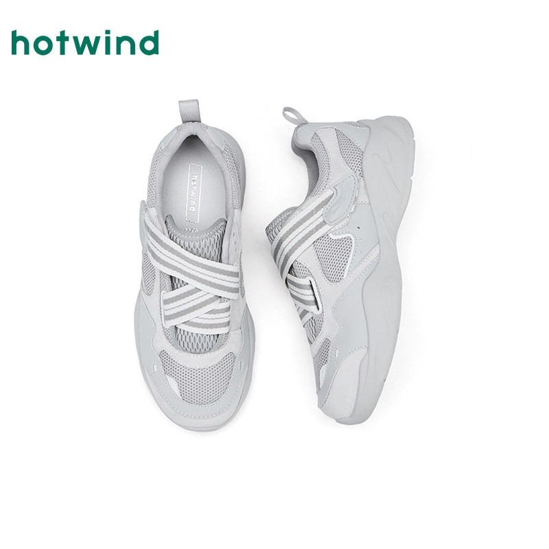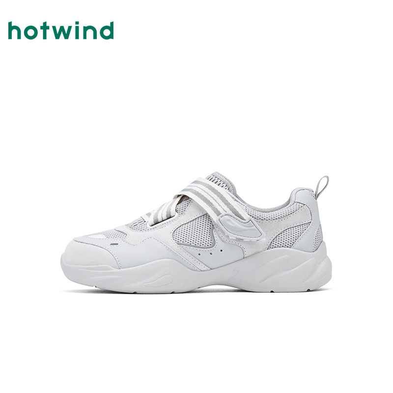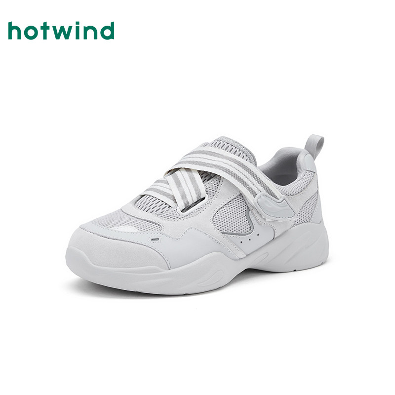 热风白色休闲鞋2026年春季新款魔术贴女鞋软底网面鞋子H09W26107