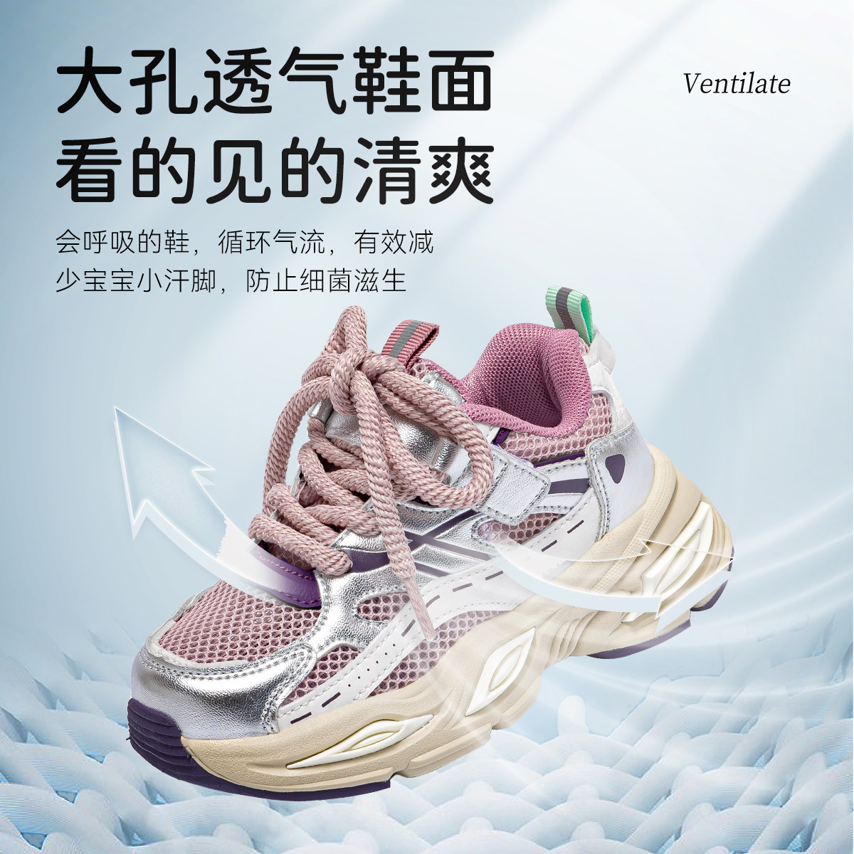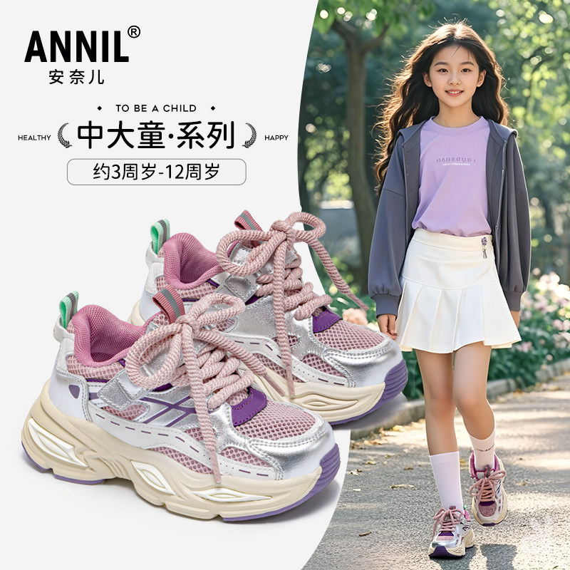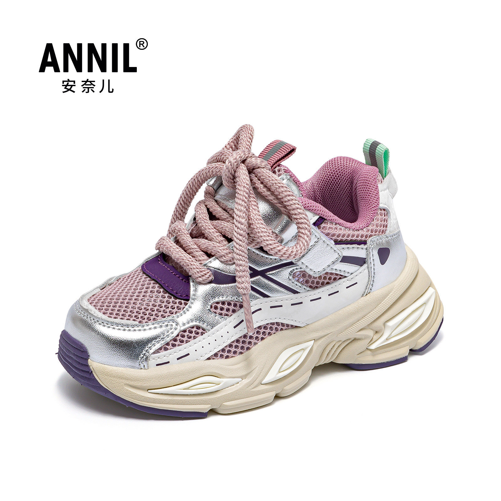 安奈儿女童单网运动鞋2026新款夏季透气网面女孩中大童儿童老爹鞋