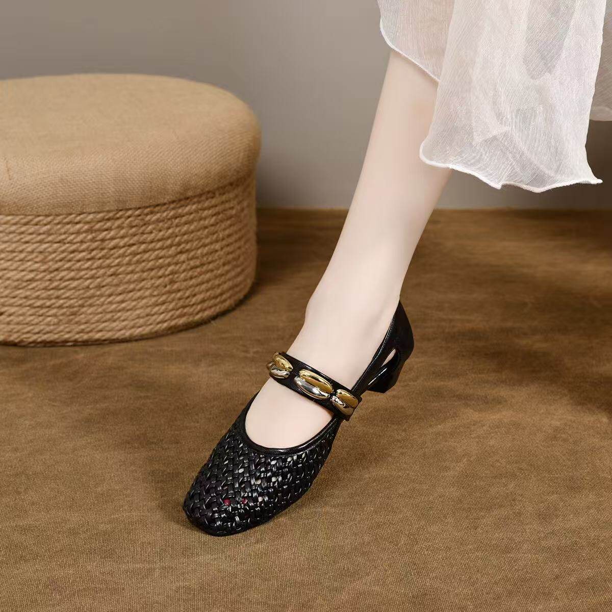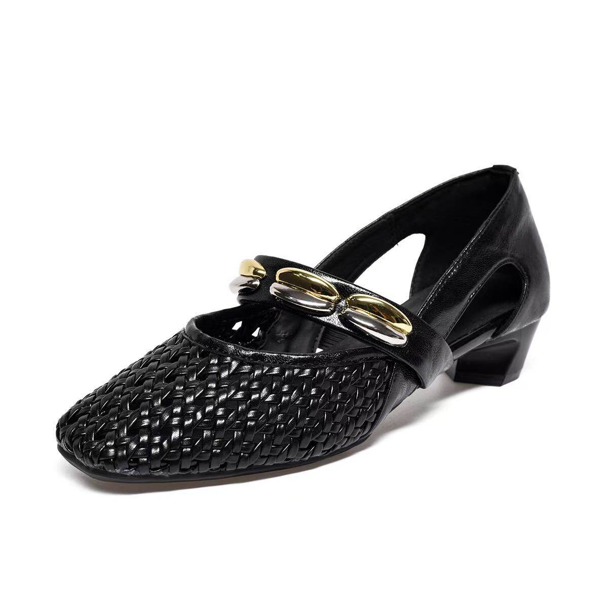 软底软面舒适女鞋法式气质平底单鞋女真皮镂空凉鞋透气不闷脚女鞋