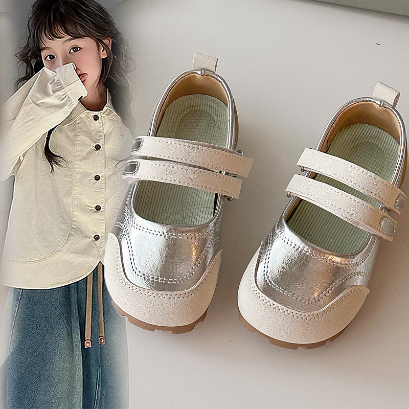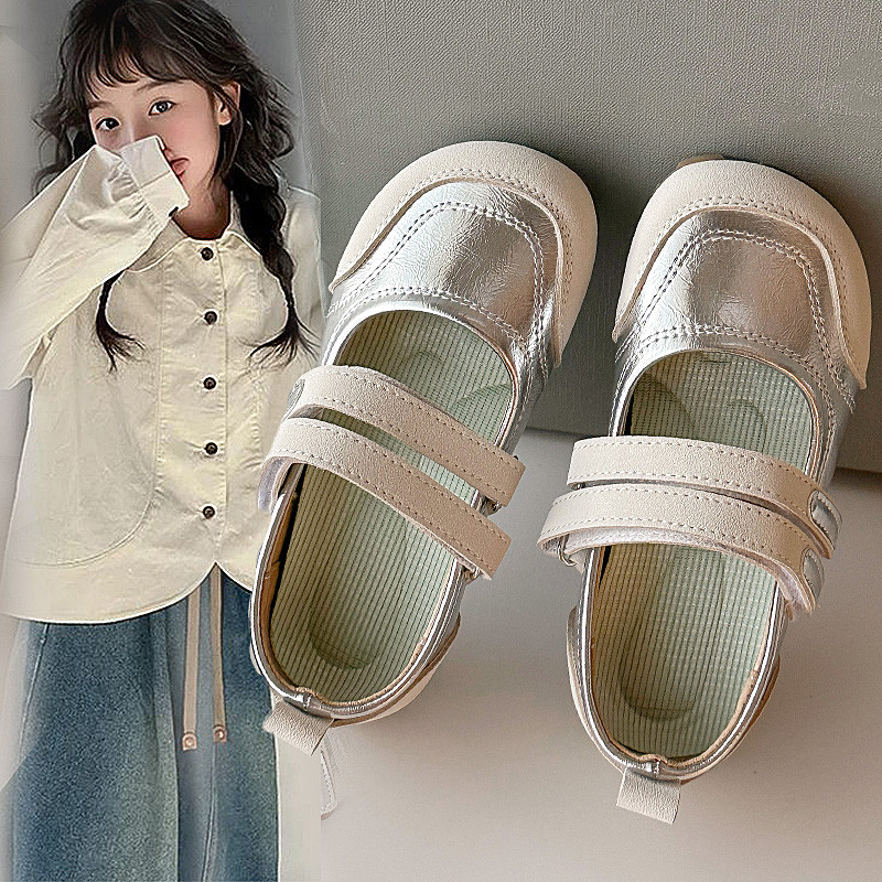 女童小皮鞋2025新款公主风软底单鞋春秋配裙子银色豆豆鞋儿童鞋子