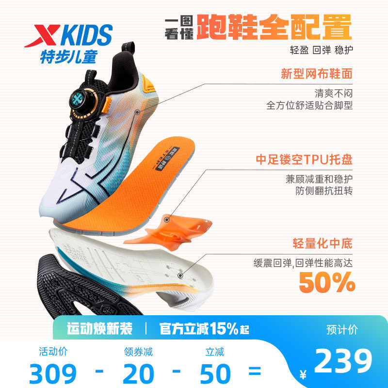 【氘风】特步童鞋男童运动鞋儿童鞋子青少年体考体测训练鞋跑步鞋