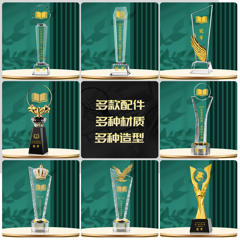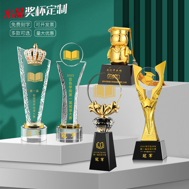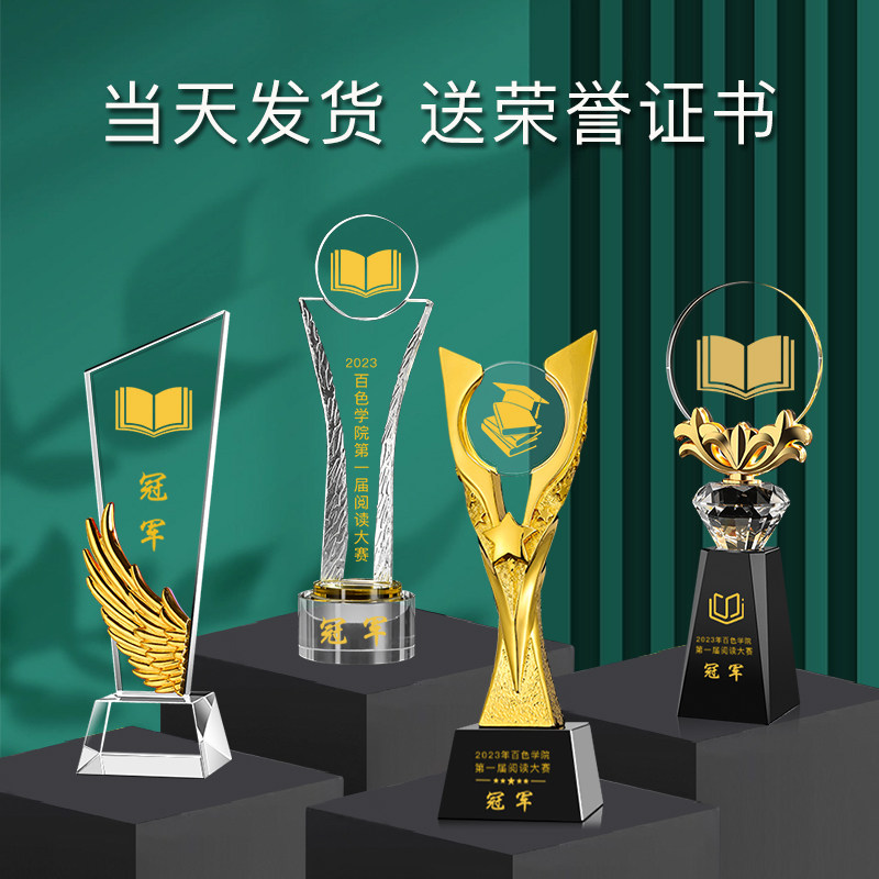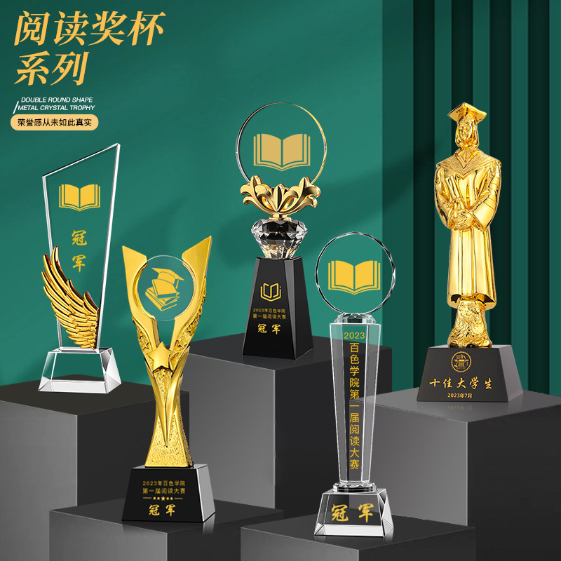 水晶奖杯定制诗词朗诵讲故事阅读之星书香家庭教师英语儿童作文