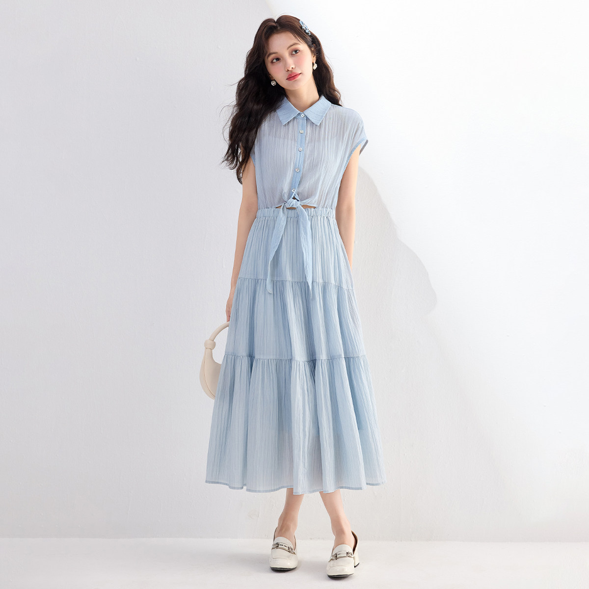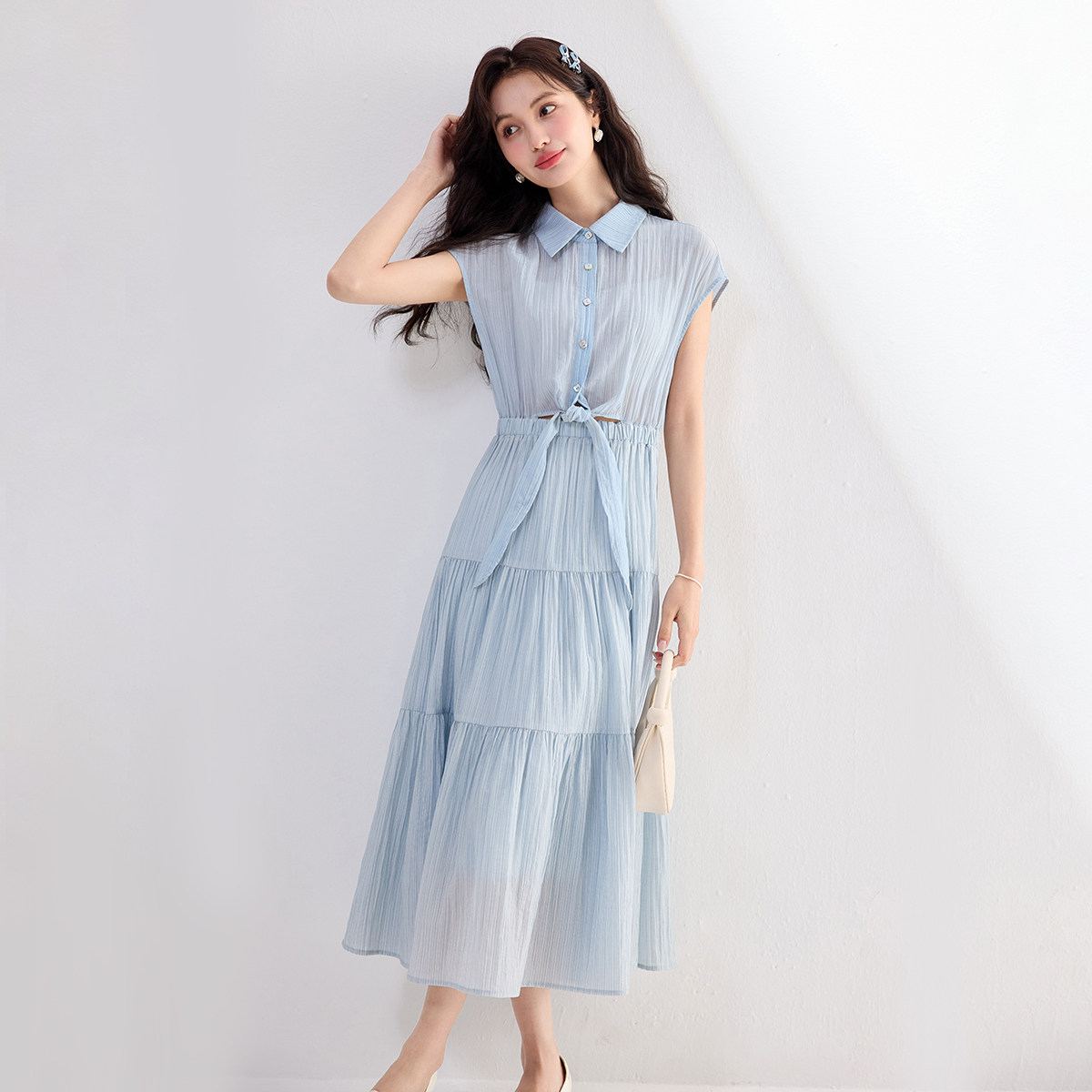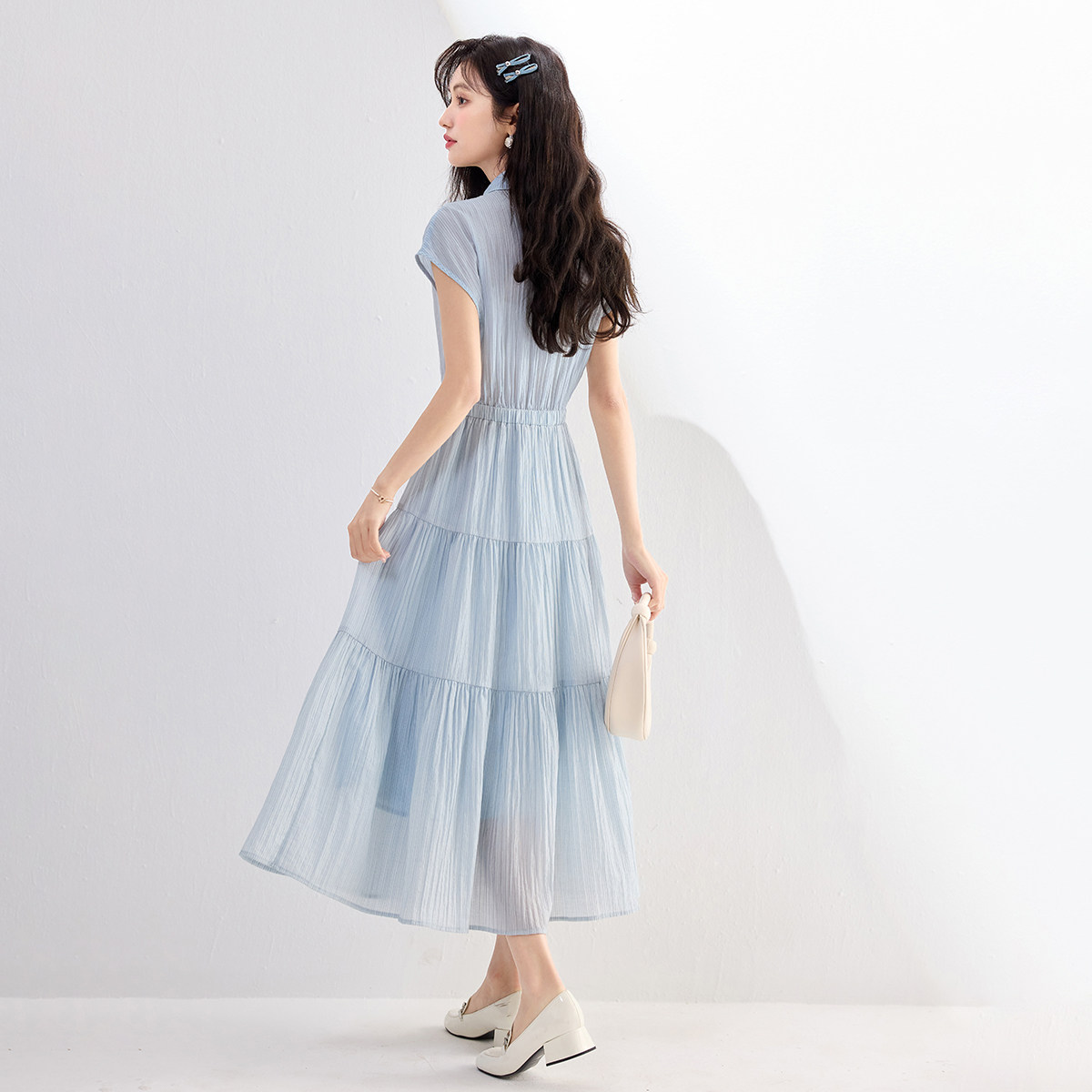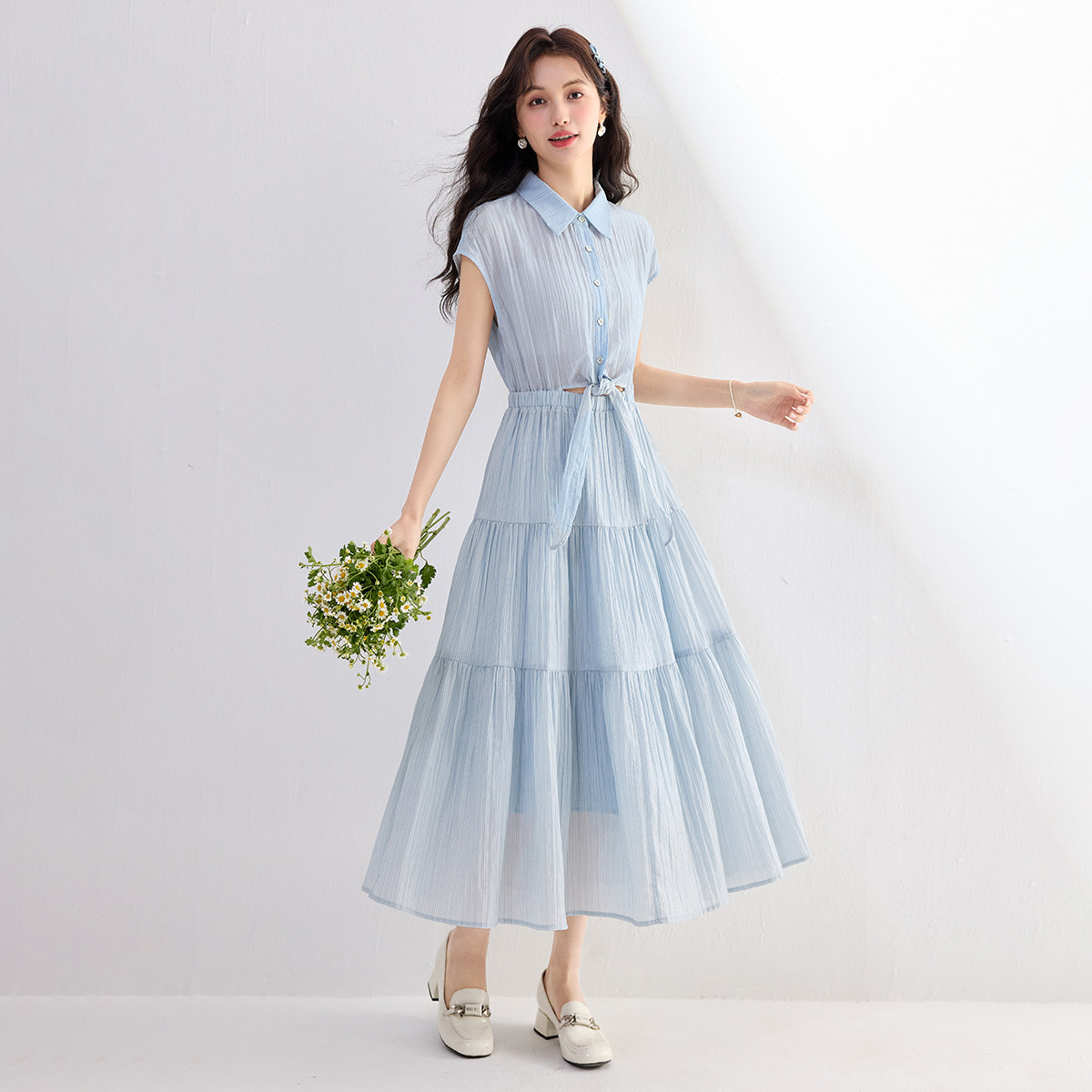 2025夏季新款设计感飞飞袖连衣裙通勤中长裙收腰显瘦女生日常裙子