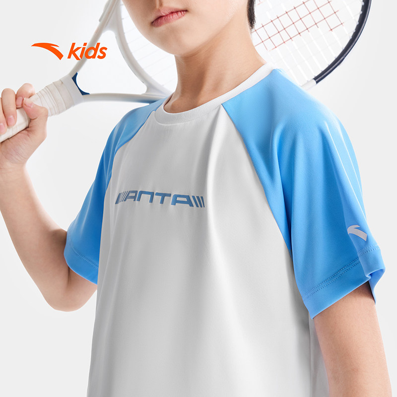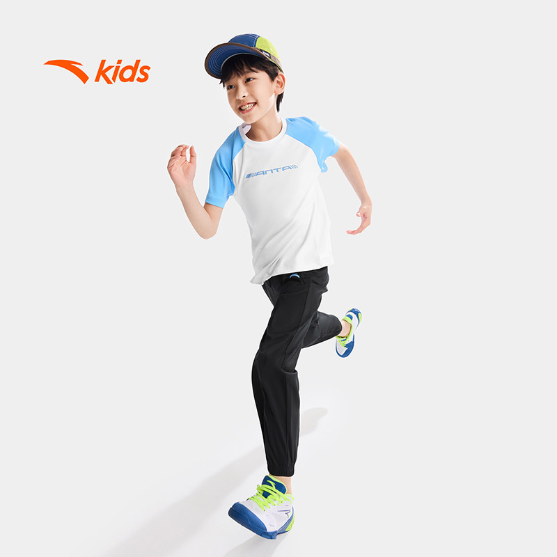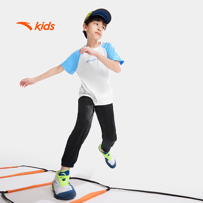 安踏儿童男女童针织运动套2026夏季新款透气儿童速干短袖长裤套装