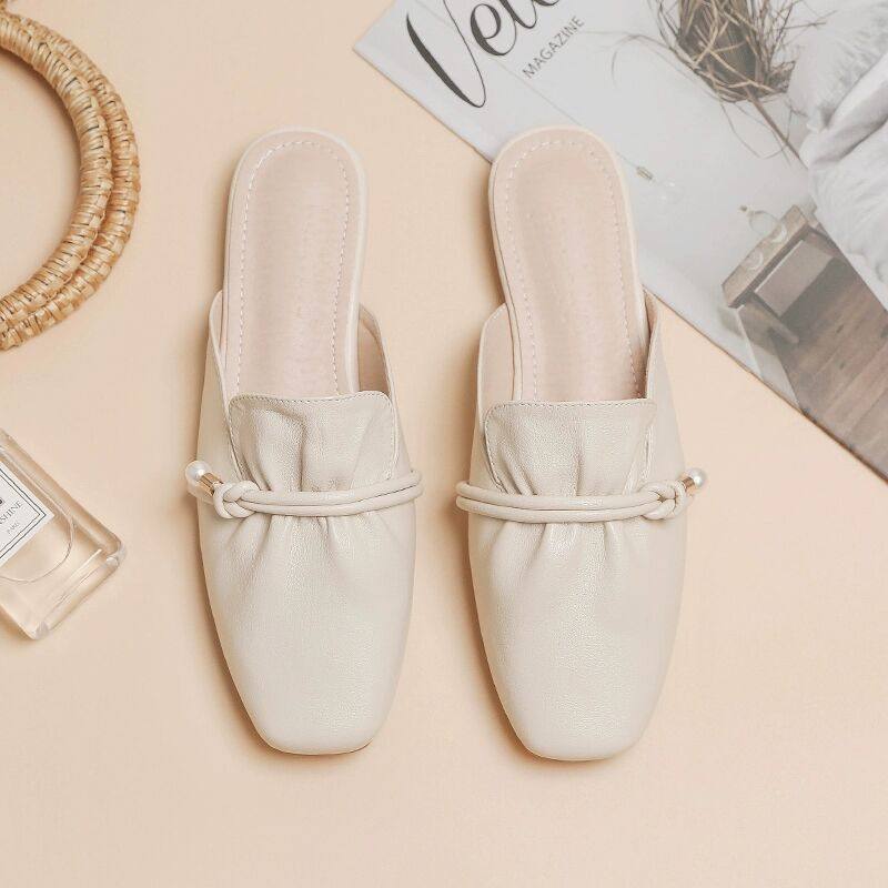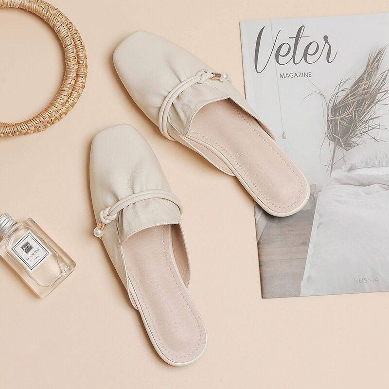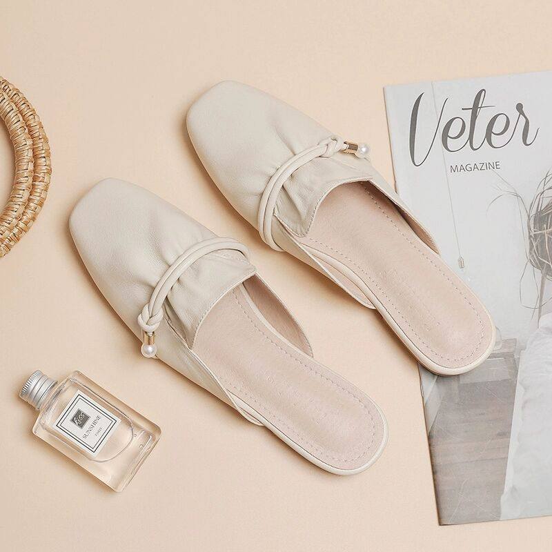 断码清仓包头半拖鞋女平底软底外穿2026夏季新款真皮网红单鞋凉拖