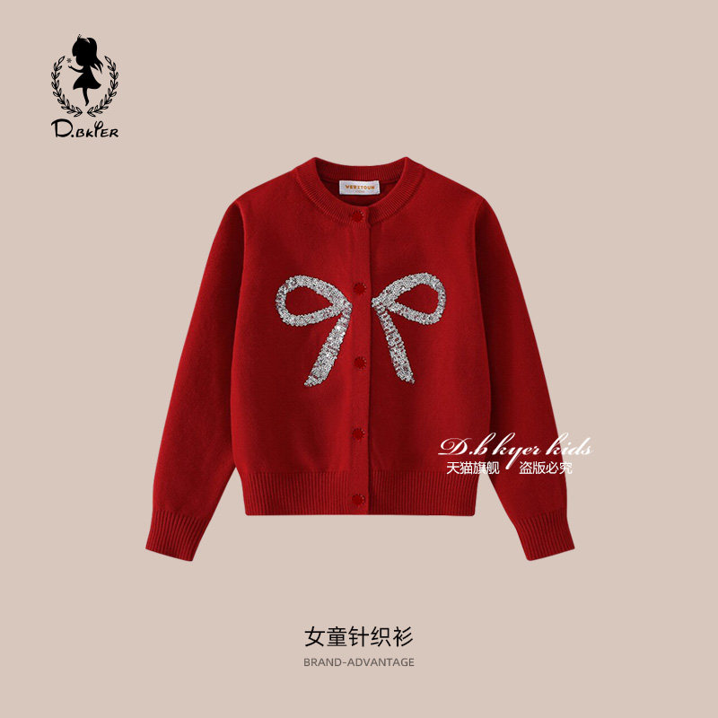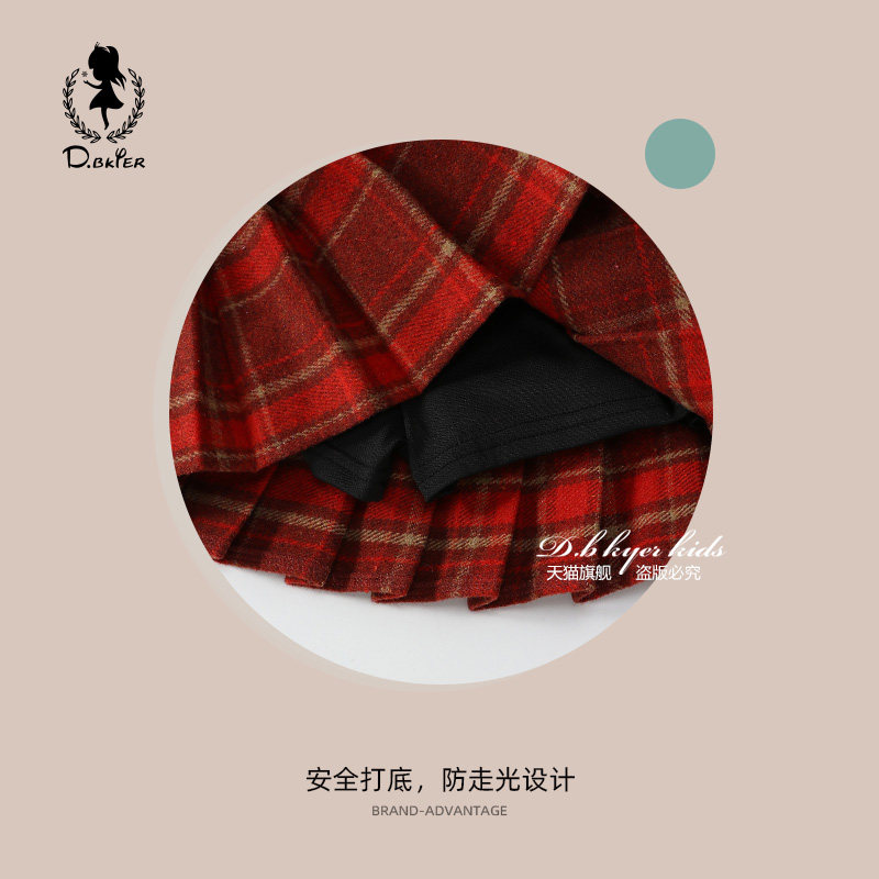 sesameclub女童裙子套装红色春装喜庆儿童女孩jk短裙毛衣洋气穿搭