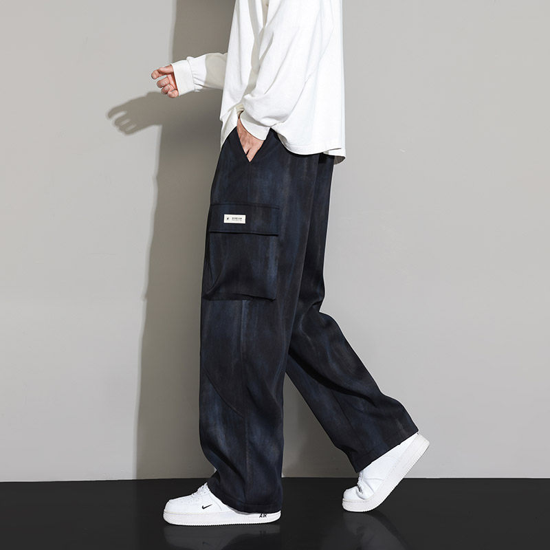青少年加绒裤子男款大码男裤秋冬工装裤休闲宽松加肥加大运动长裤