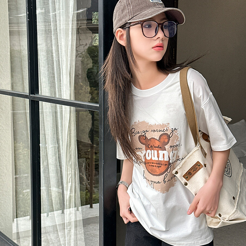 女大童短袖t恤2026新款夏装纯棉半袖初中生女孩洋气青少年上衣潮