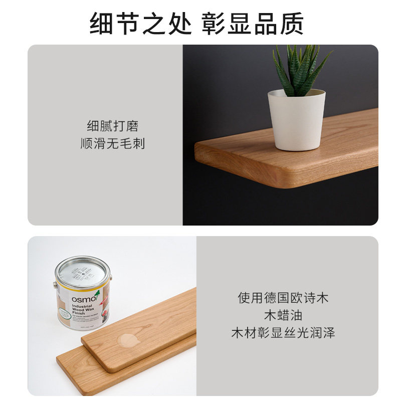 北美SUP级樱桃木/黑胡桃木一字隔板置物架原木客厅书房餐厅可定制