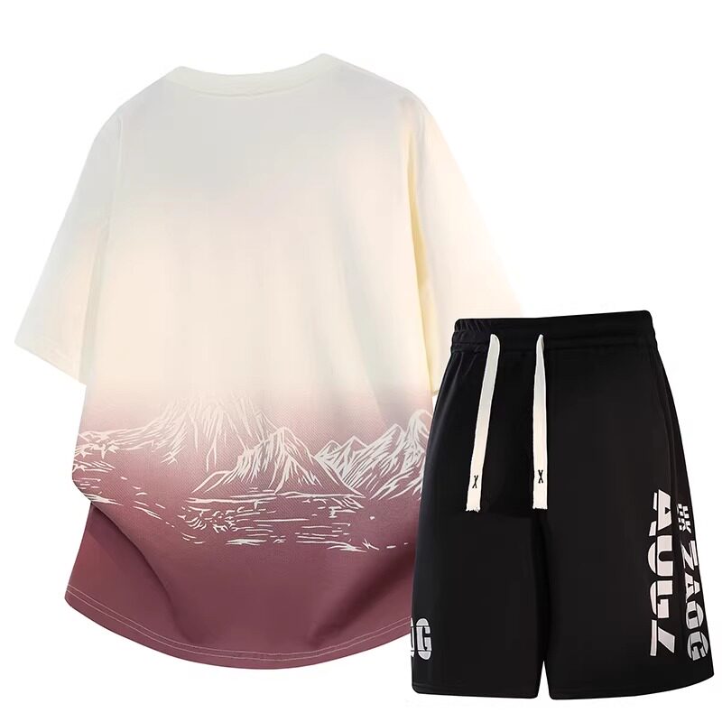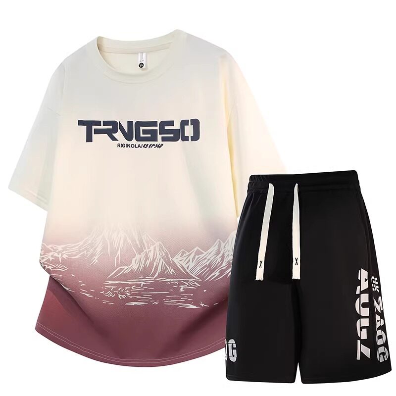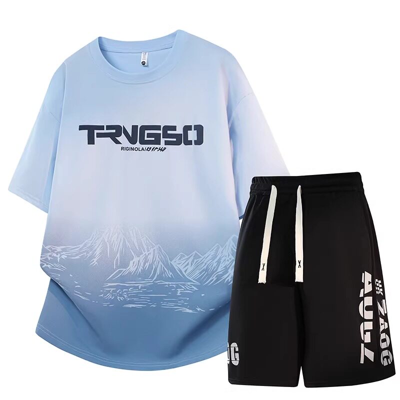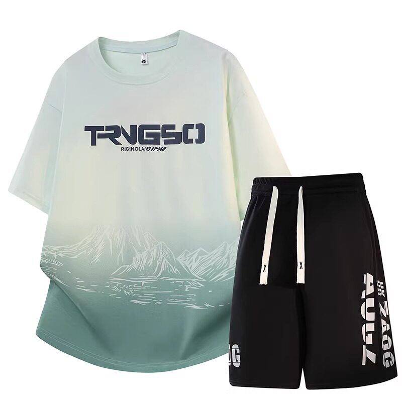 潮流短袖t恤男孩夏季新款初中学生青少年大童帅气运动服两件套装