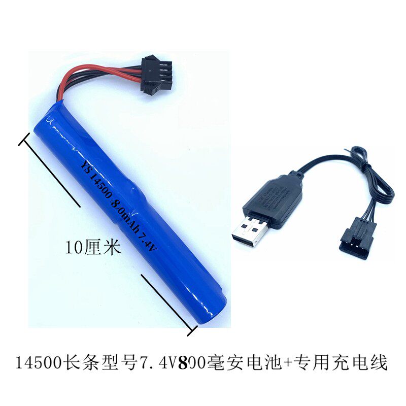 水弹电池软弹枪7.4V14500悍迪乐辉M416大容量锂电池USB充电线